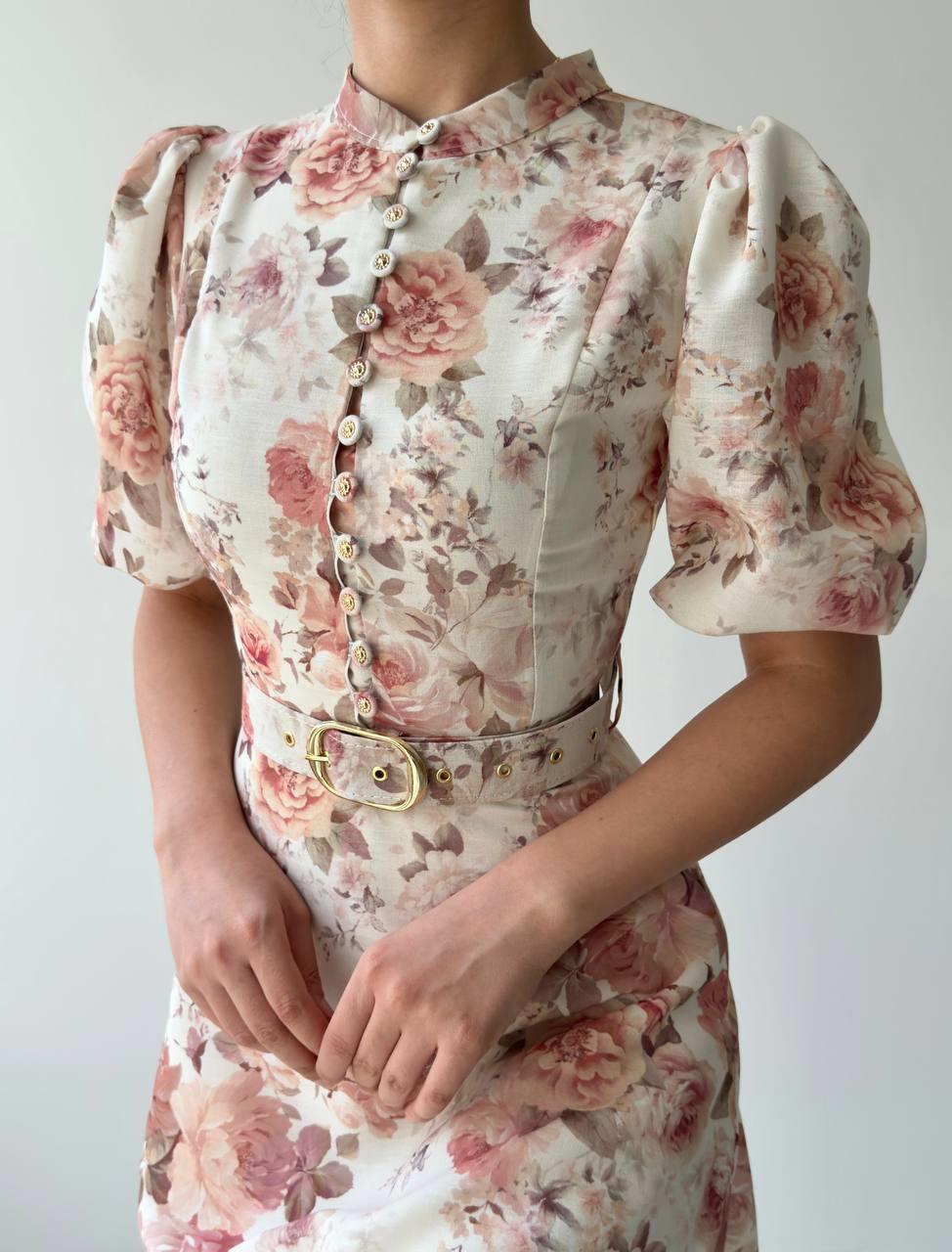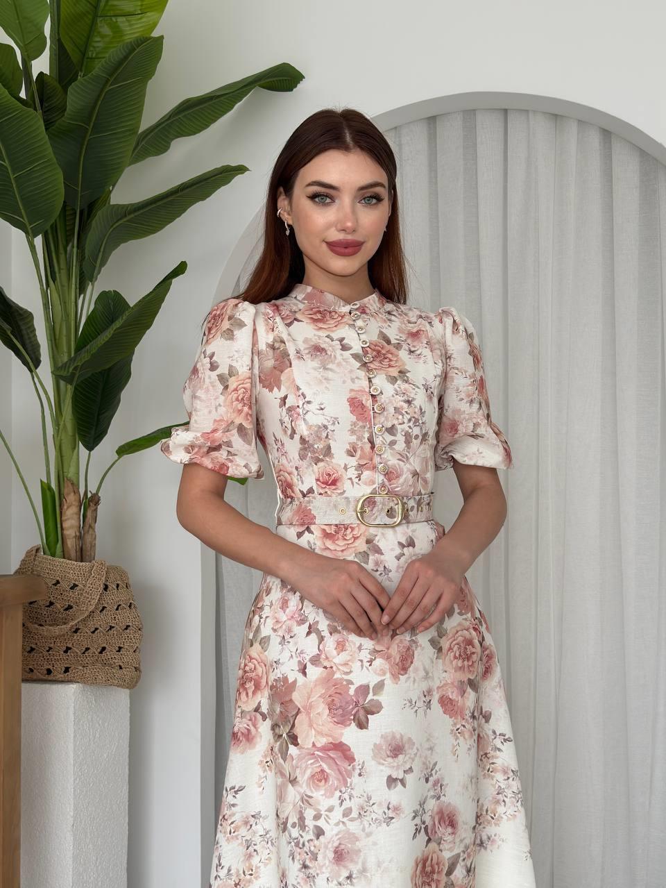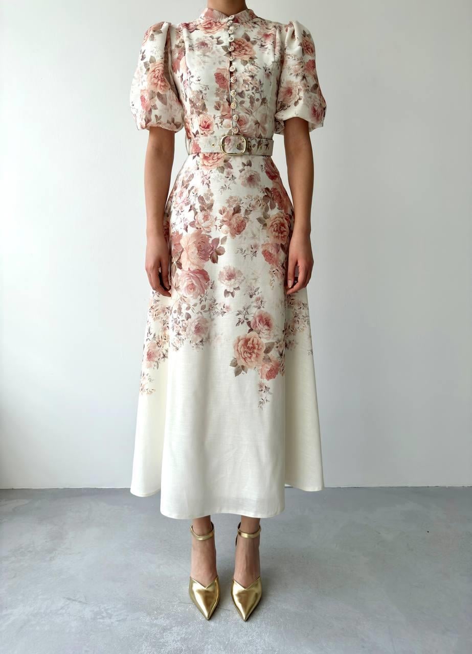Alexa Çiçek Desenli Kemerli Uzun Elbise (CON6510)
