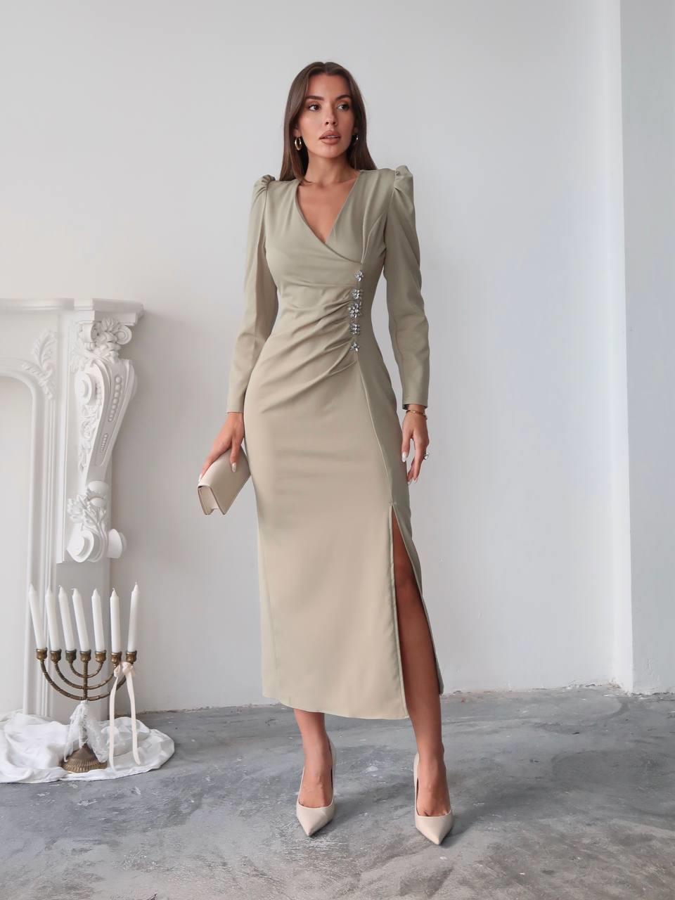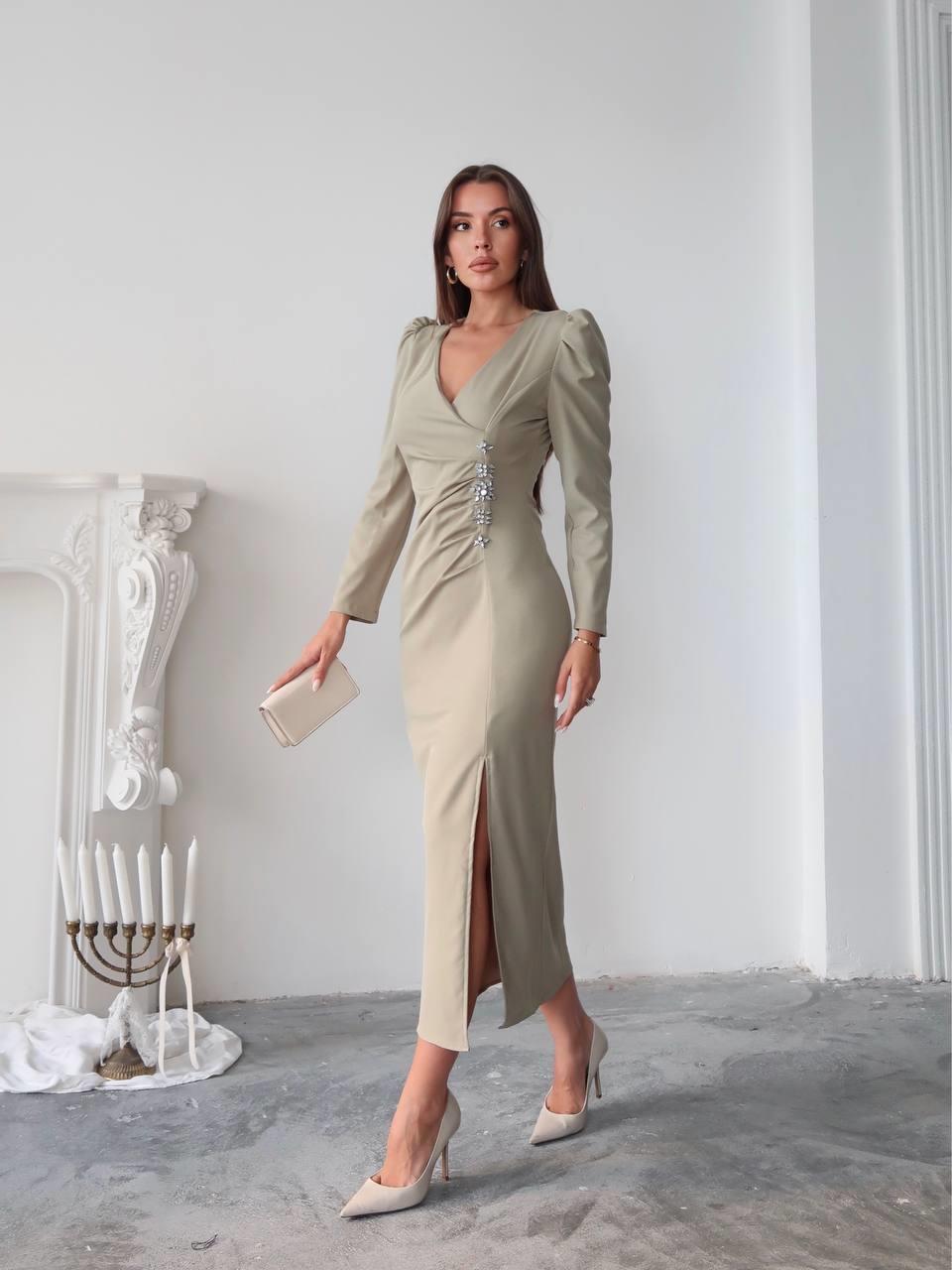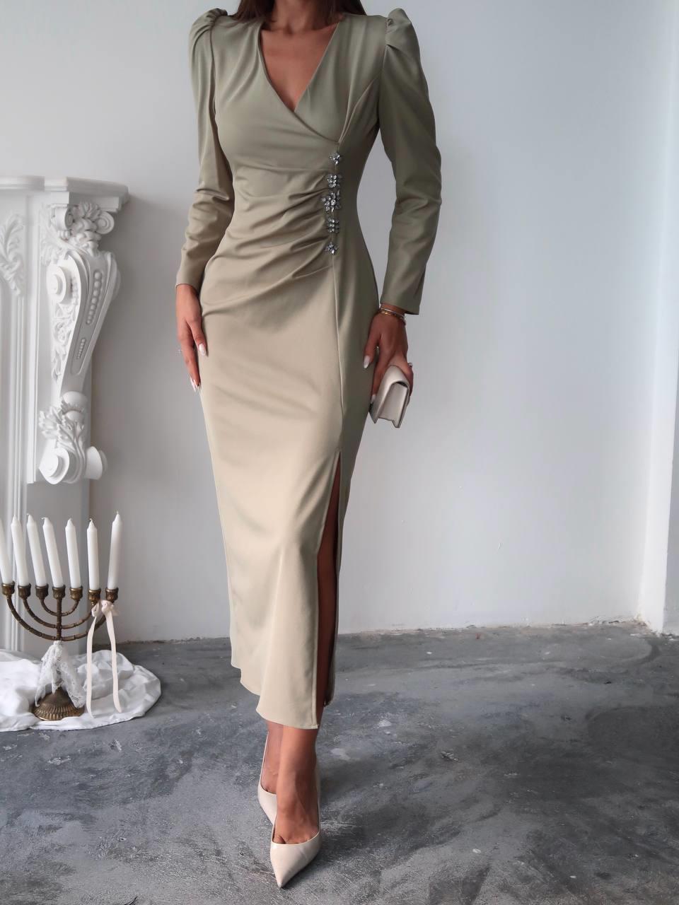 Barley Taş Baskılı Yırtmaclı Uzun Elbise (CON6382)