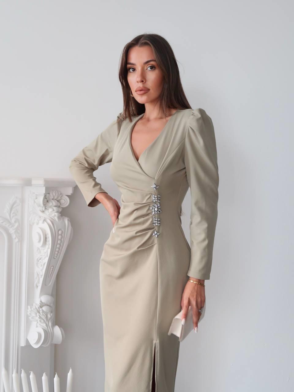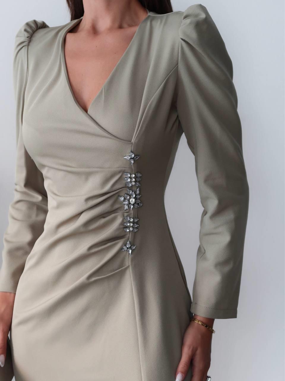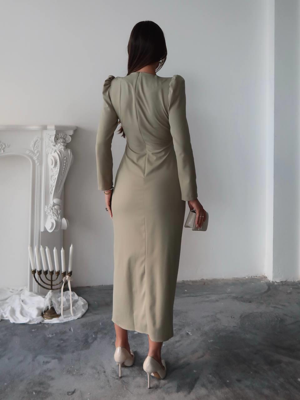 Barley Taş Baskılı Yırtmaclı Uzun Elbise (CON6382)