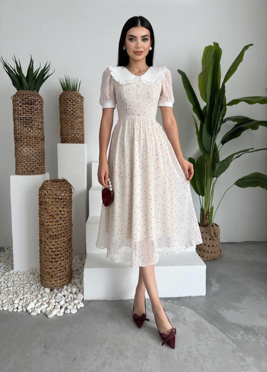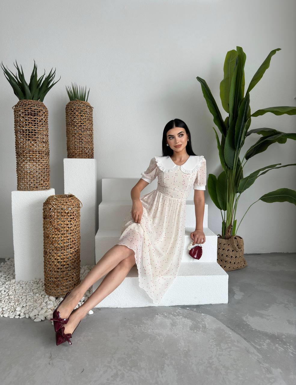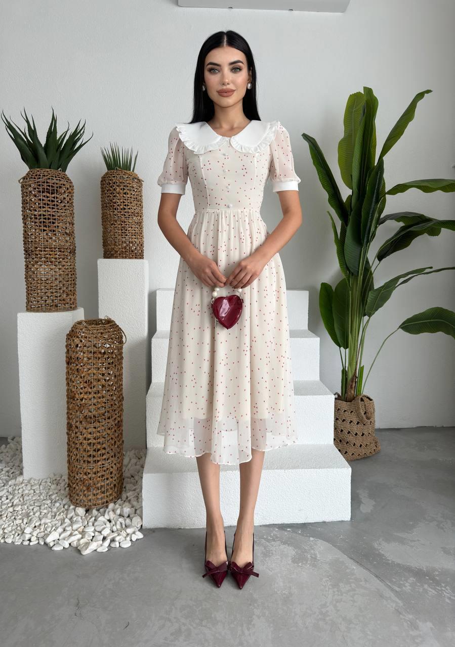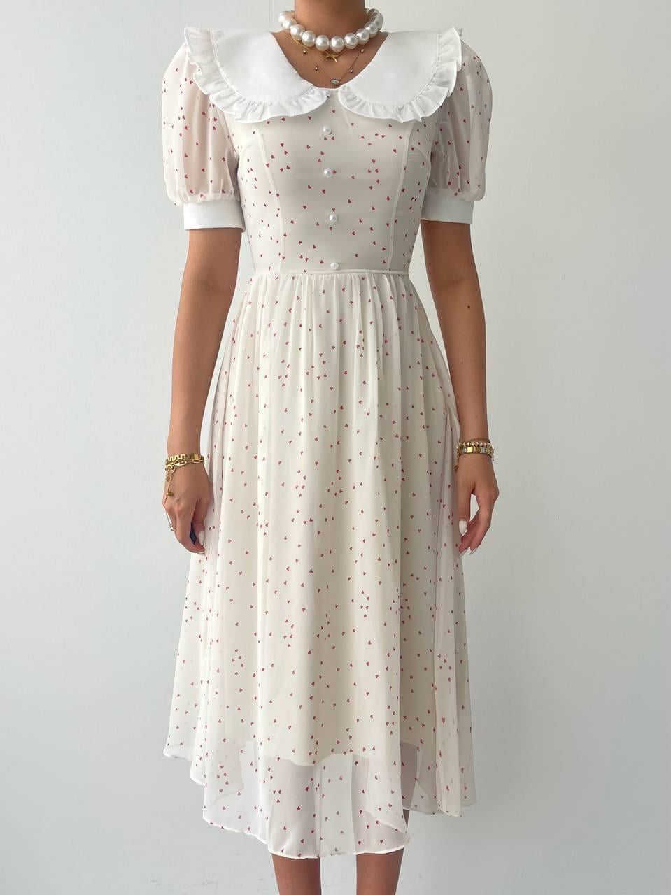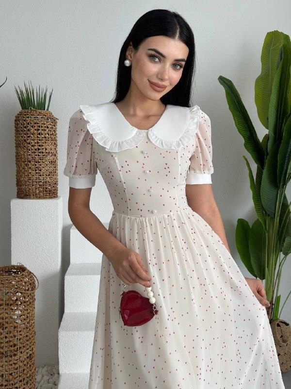 Bebe Yaka Şifon Marli Midi Elbise (CON6536)
