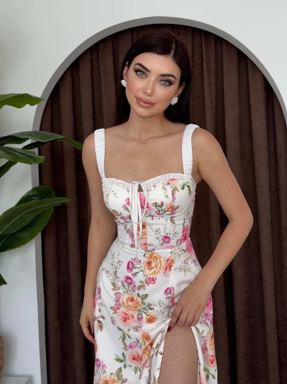 Çiçek Desenli Askılı Midi Elbise (CON6514)