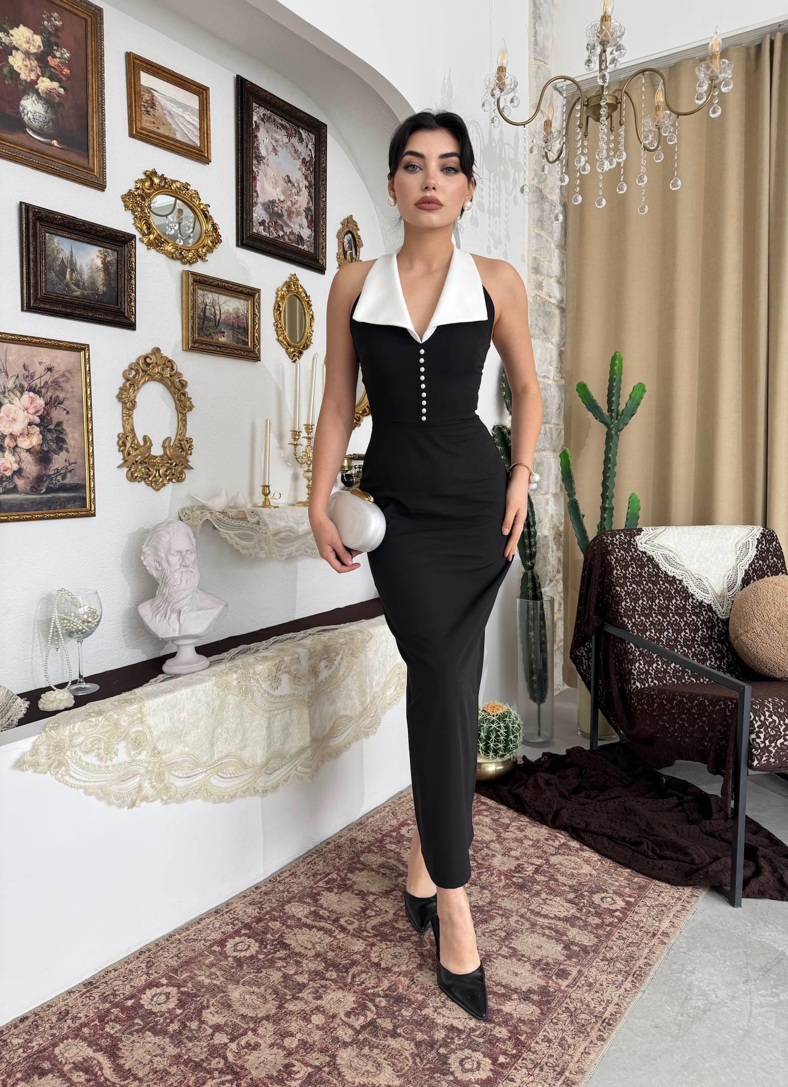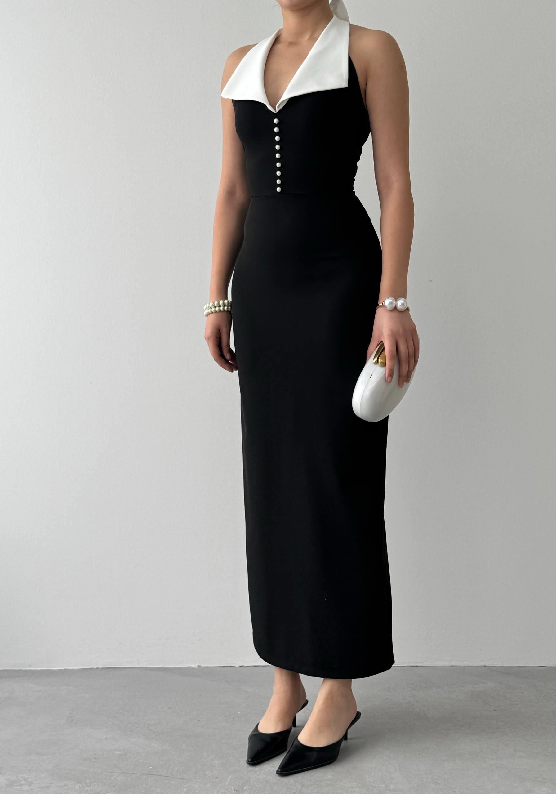 Fermuar İnci Detaylı Elbise (CON6507)