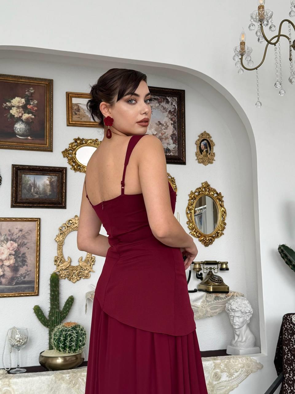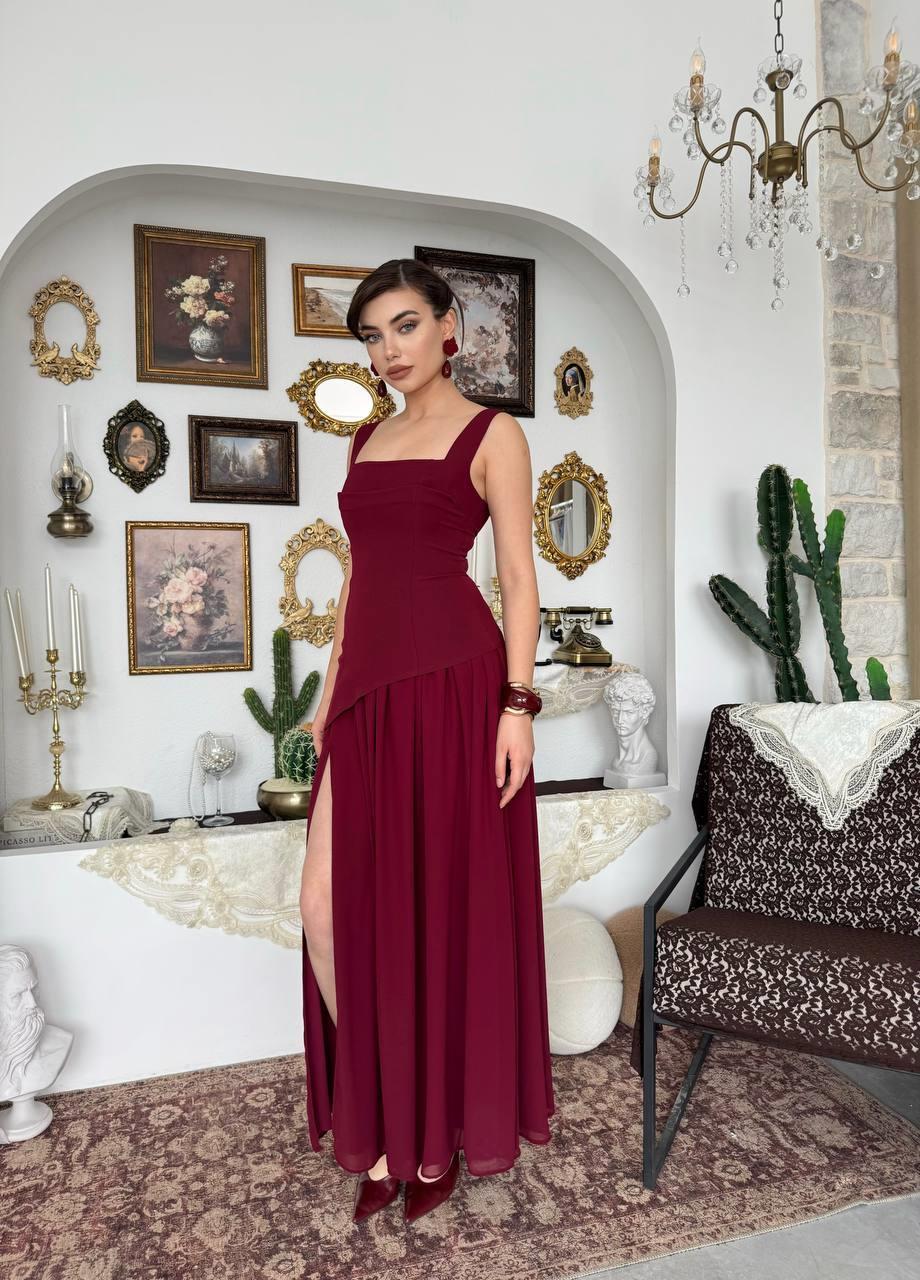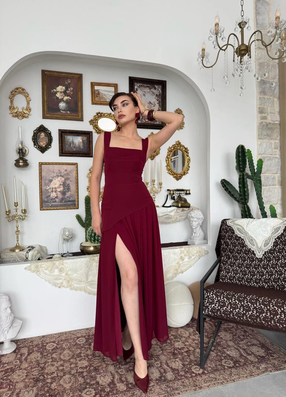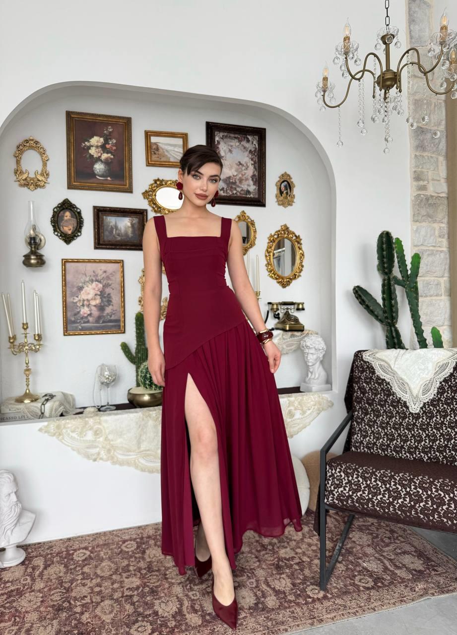 Hulos Yırtmaç Detaylı Atlas Şifon Elbise (CON6491)