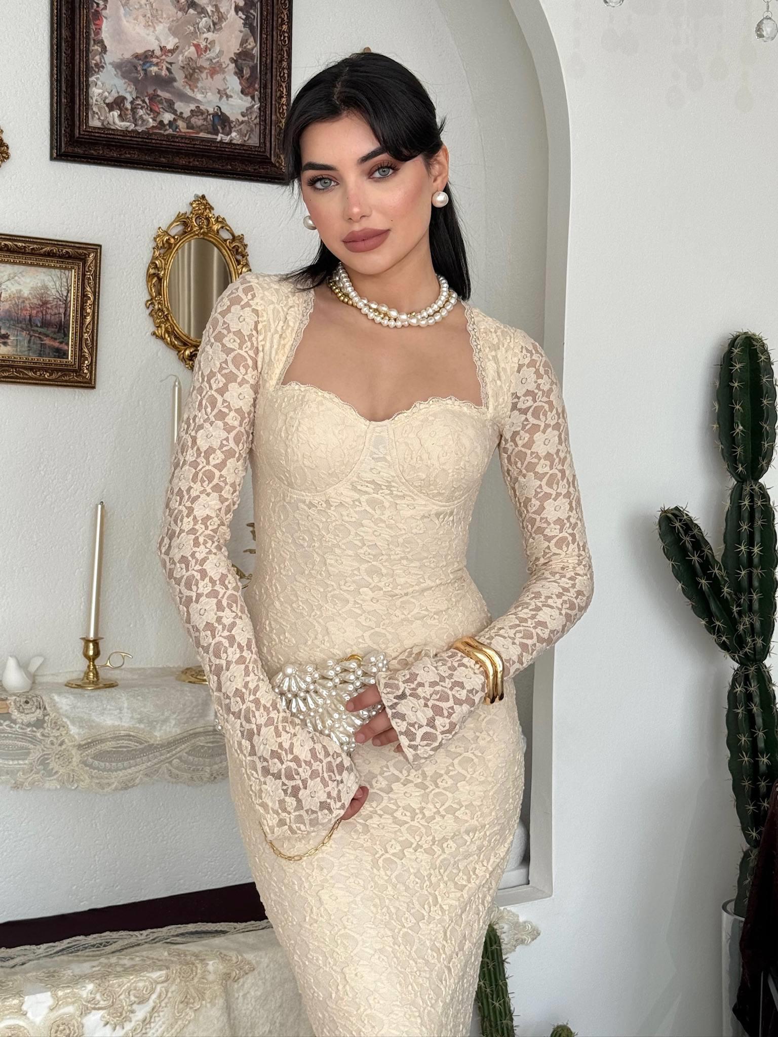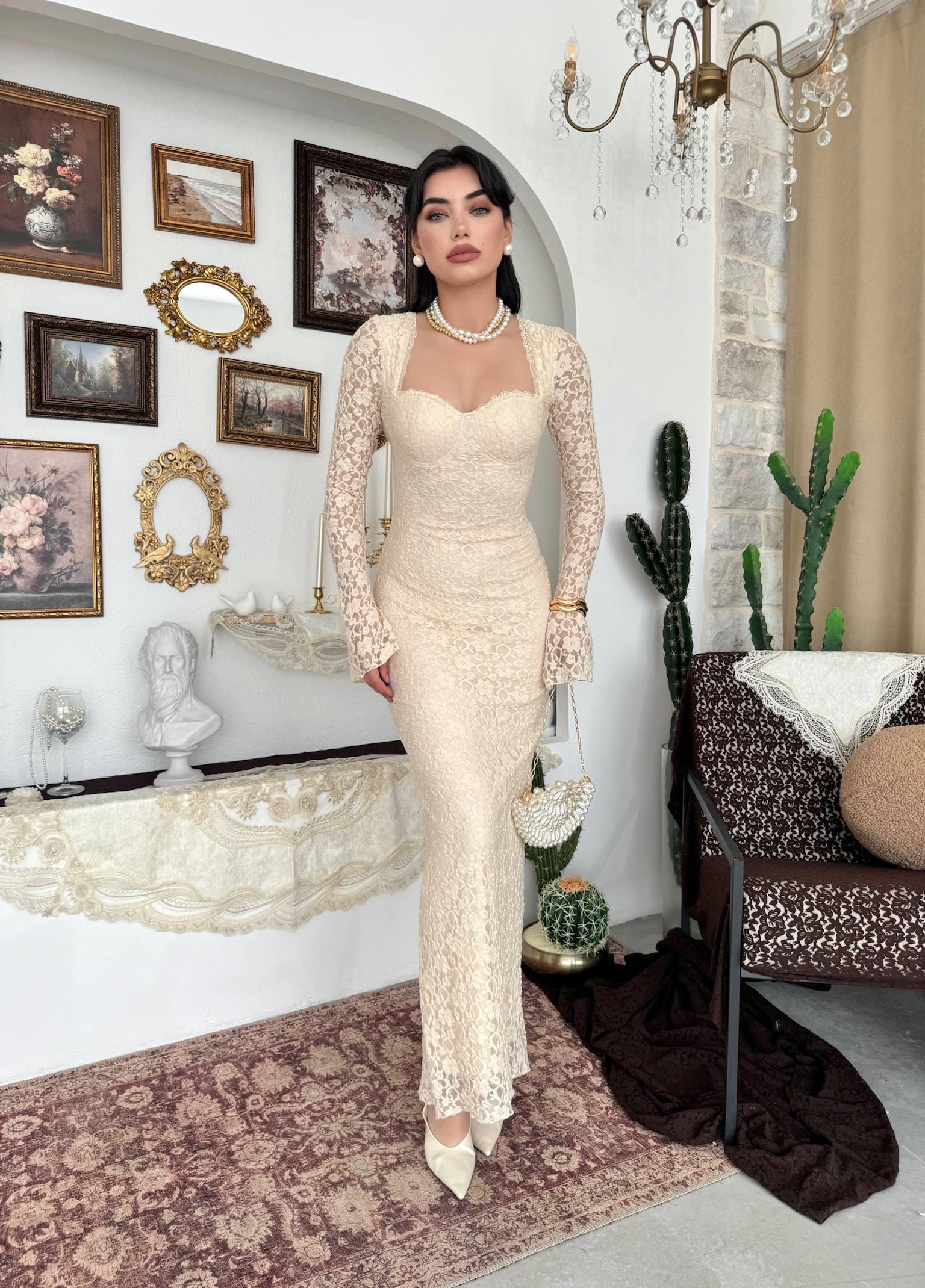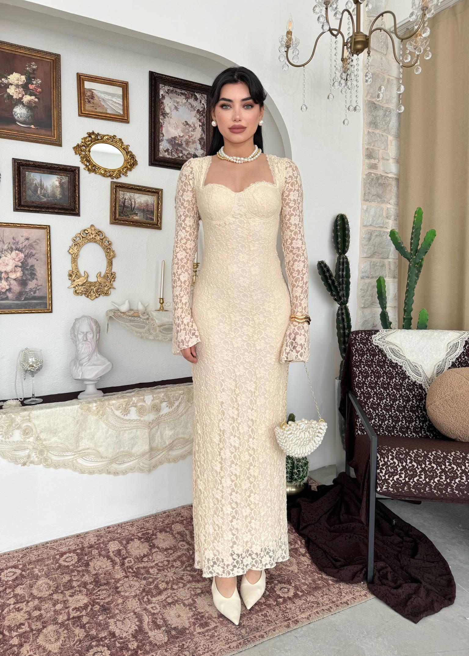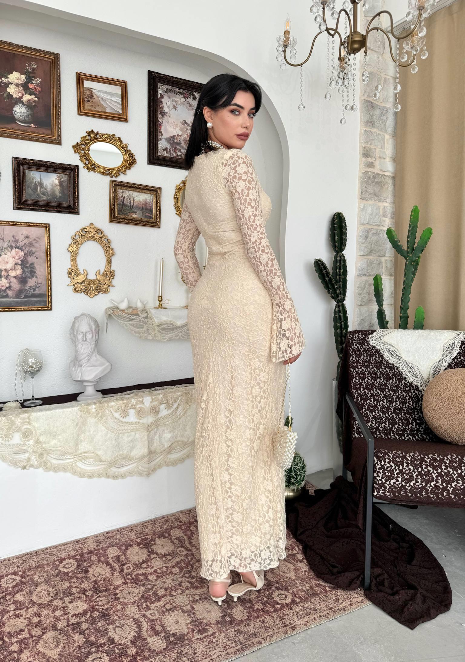 Jelon Uzun Dantel Tasarım Elbise (CON6509)