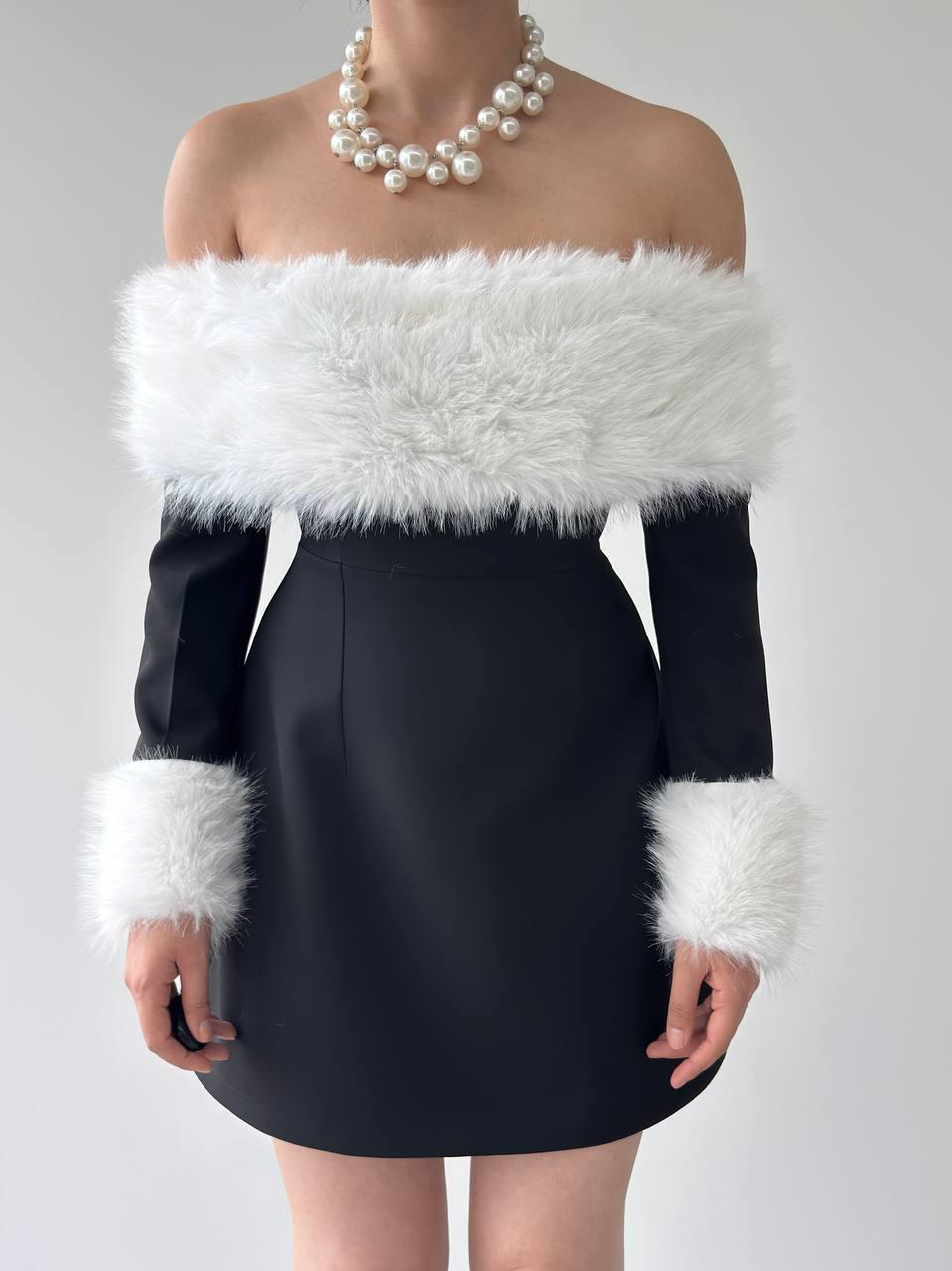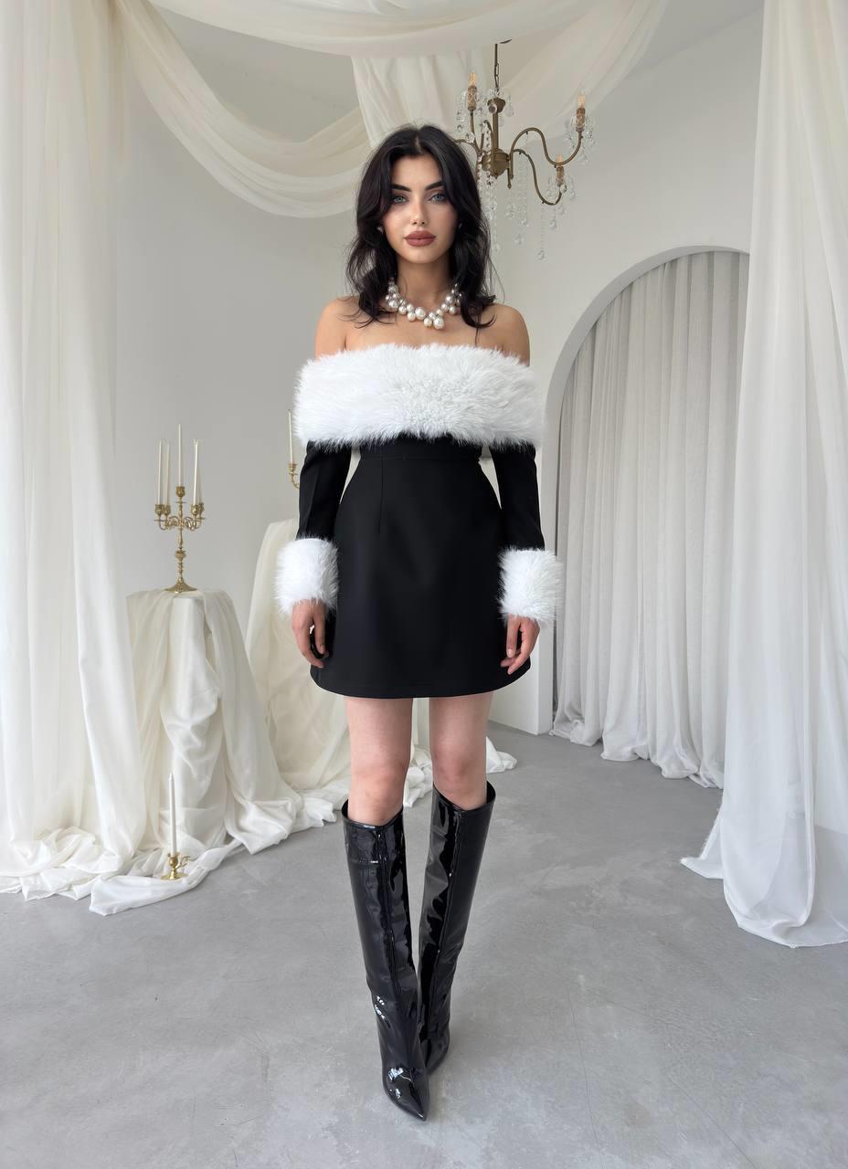 Kadın Peluş Syra Straplez Elbise (CON6392)