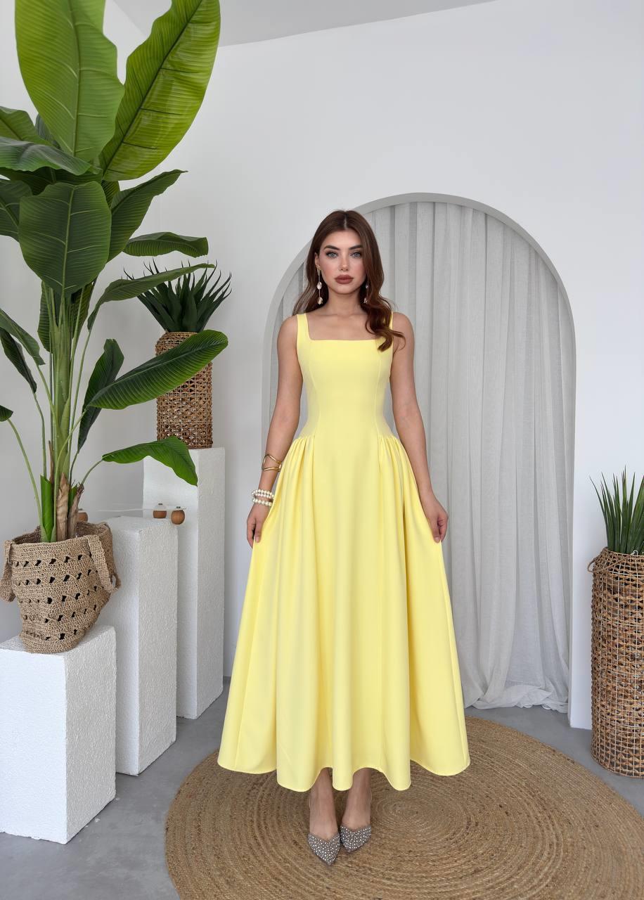 Kalın Askılı Hera Uzun Atlas Elbise (CON6535)