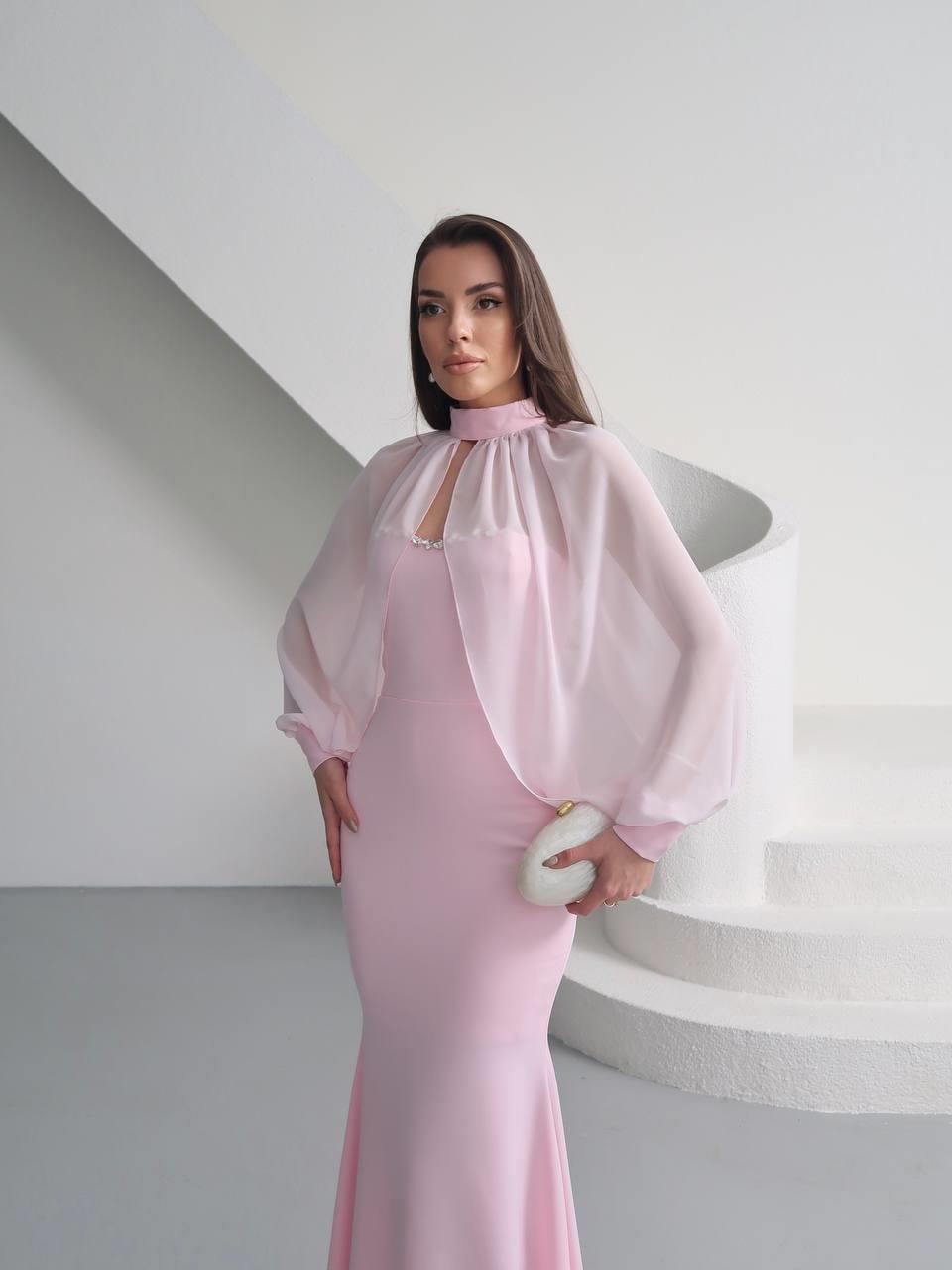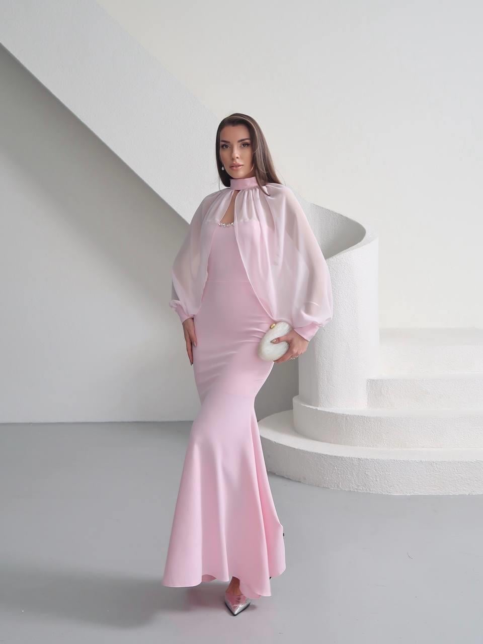 Kalp Yaka Taşlı Tasarım Şifon Elbise Angeline (CON6467)