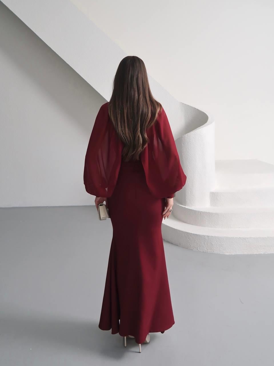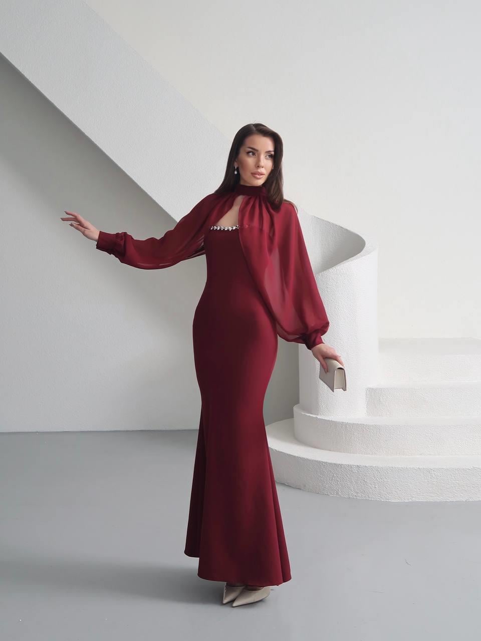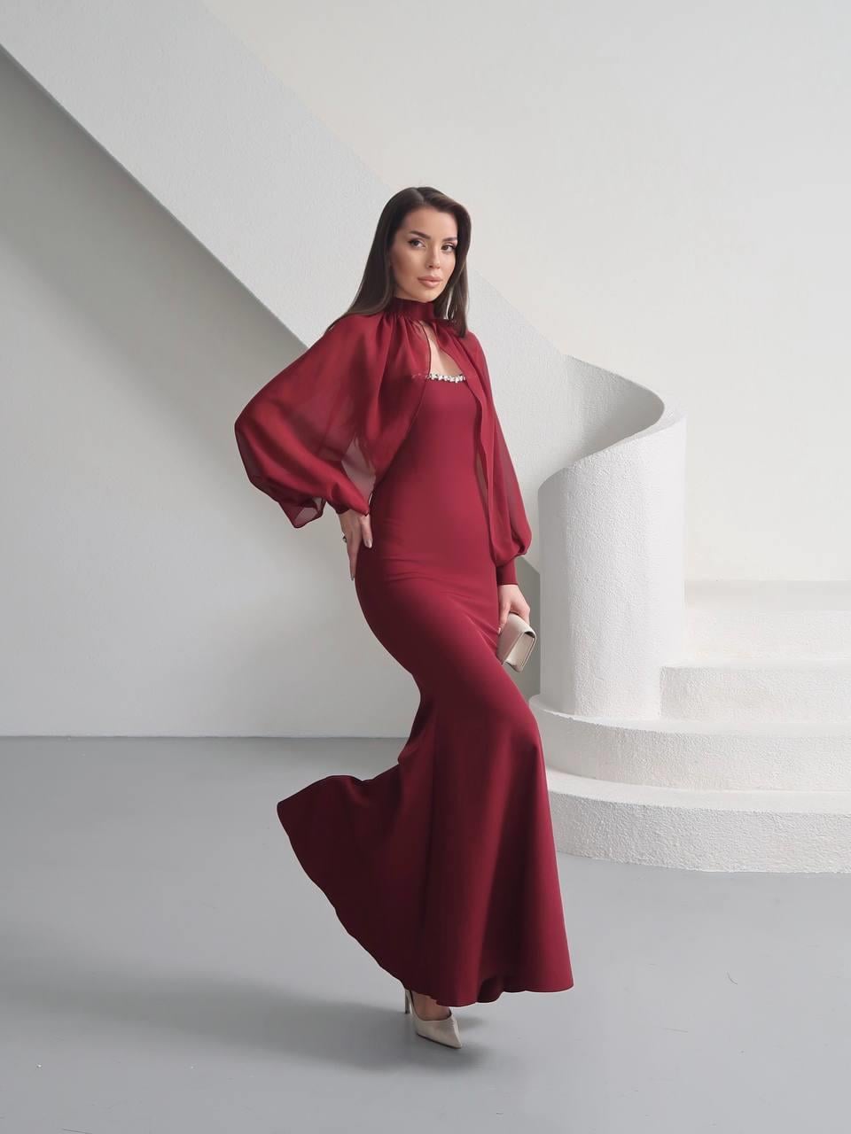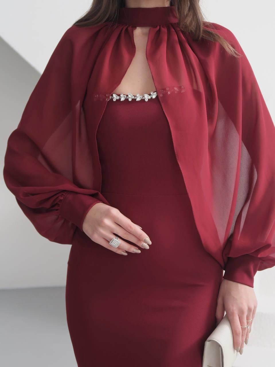 Kalp Yaka Taşlı Tasarım Şifon Elbise Angeline (CON6467)