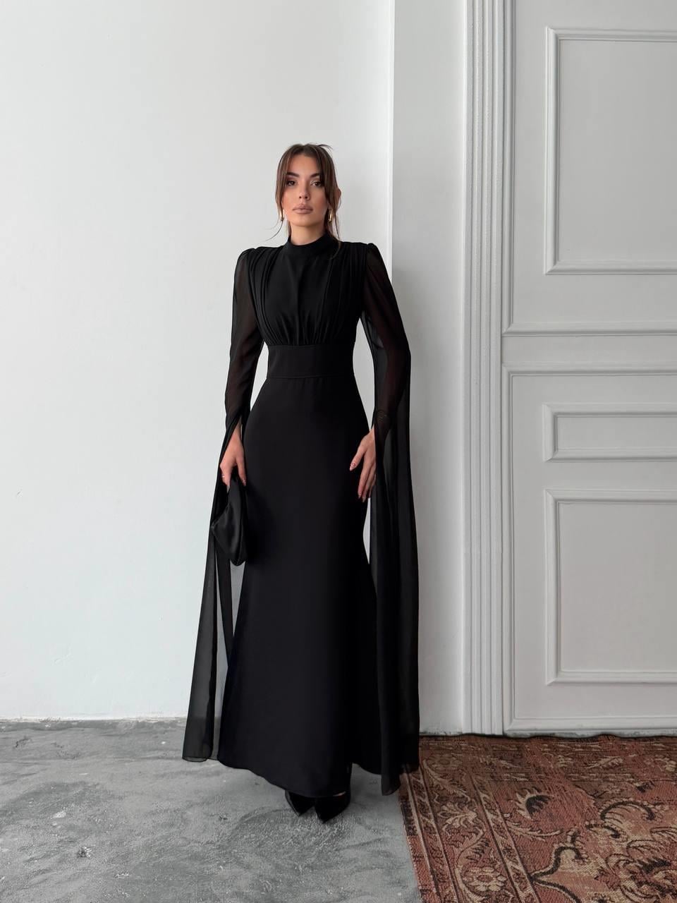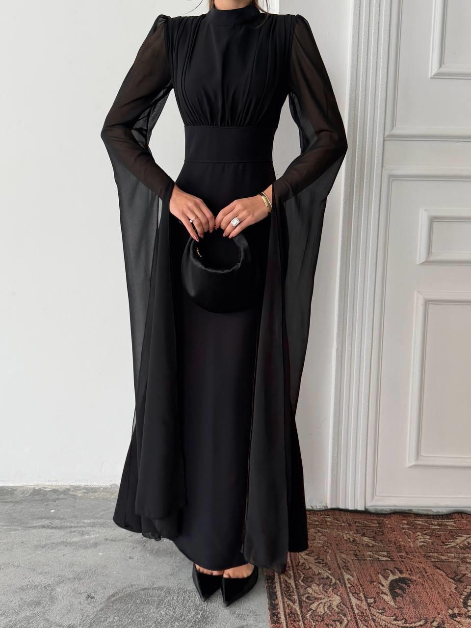 Karen Tül Kol Korsaj Bağlamalı Uzun Elbise (CON6419 )