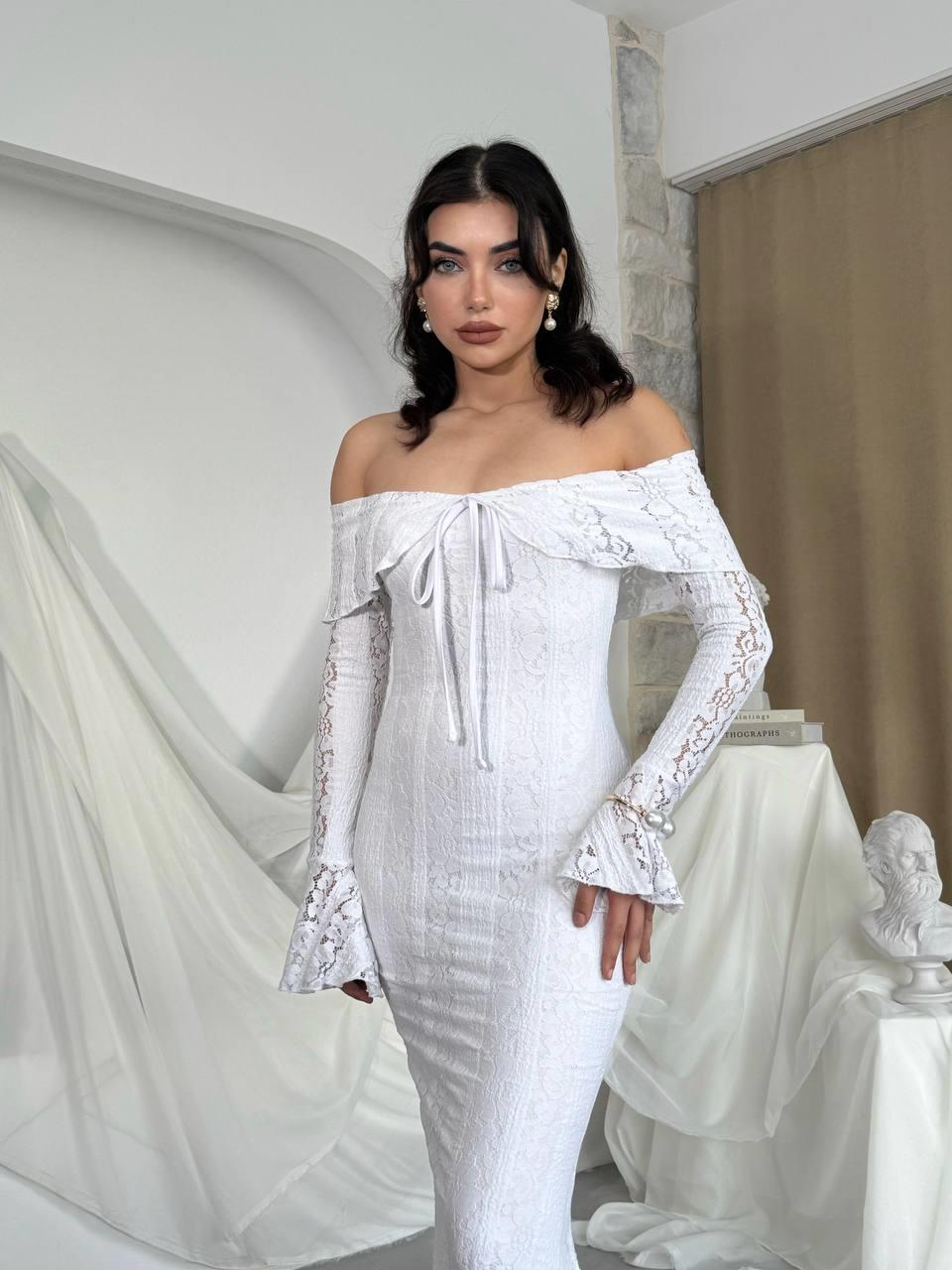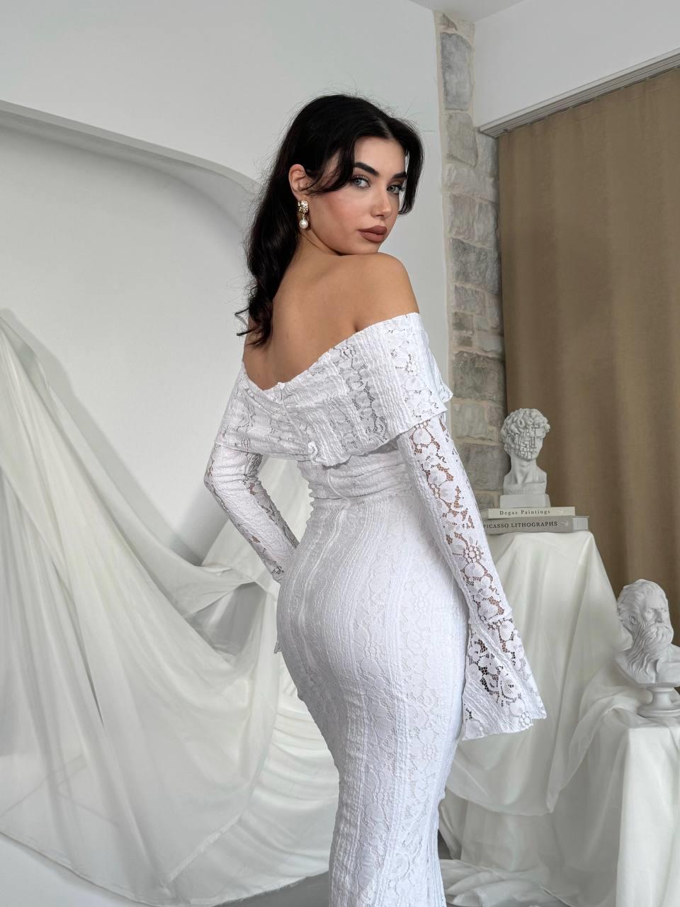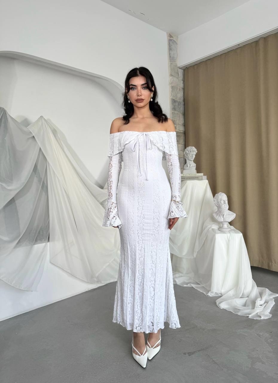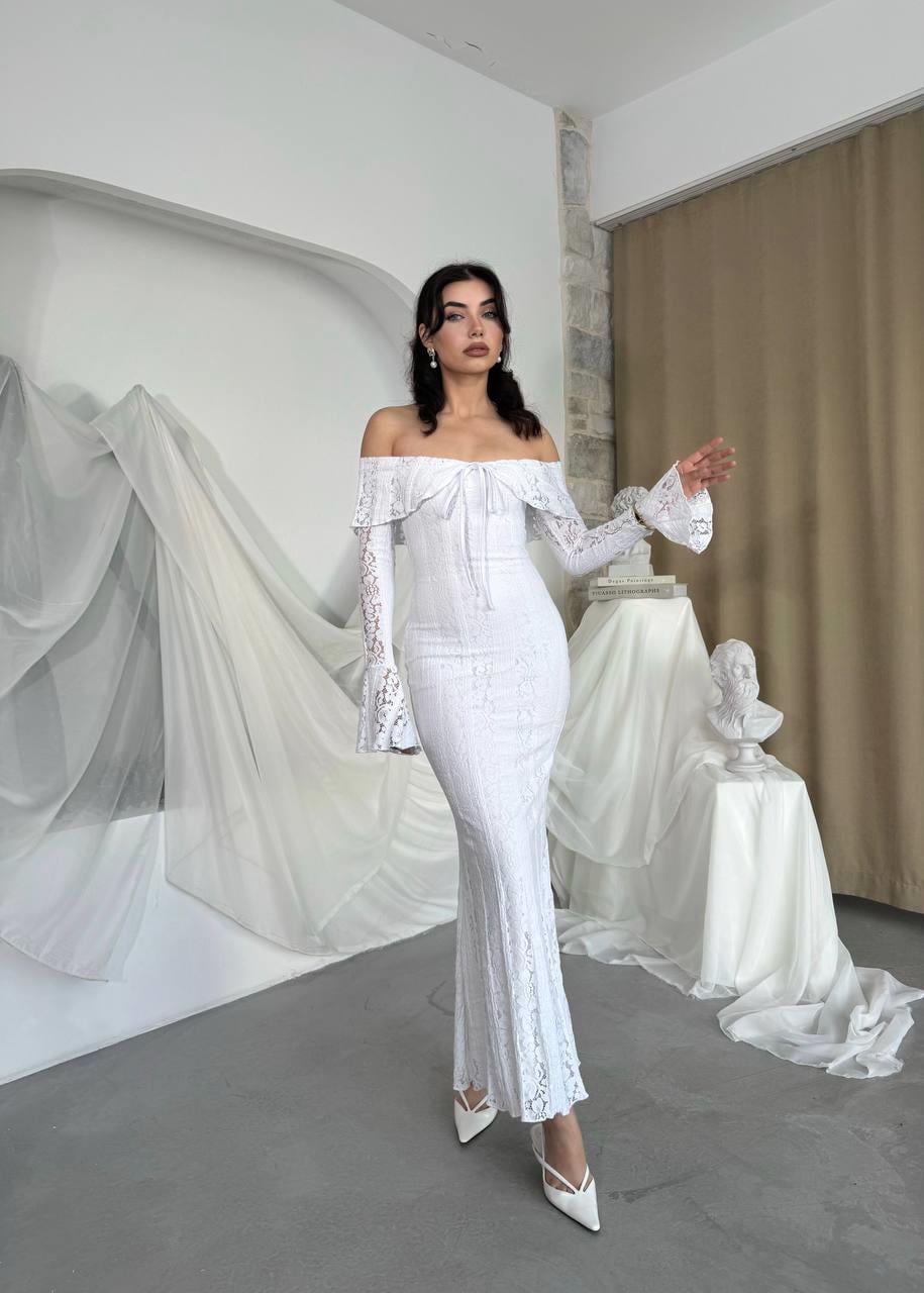 Lumina Dantel Kumaş Açık Omuz Uzun Elbise (CON6357)