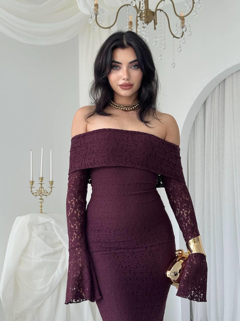 Madonna Yaka Tasarım Dantel Elbise (CON5935 )