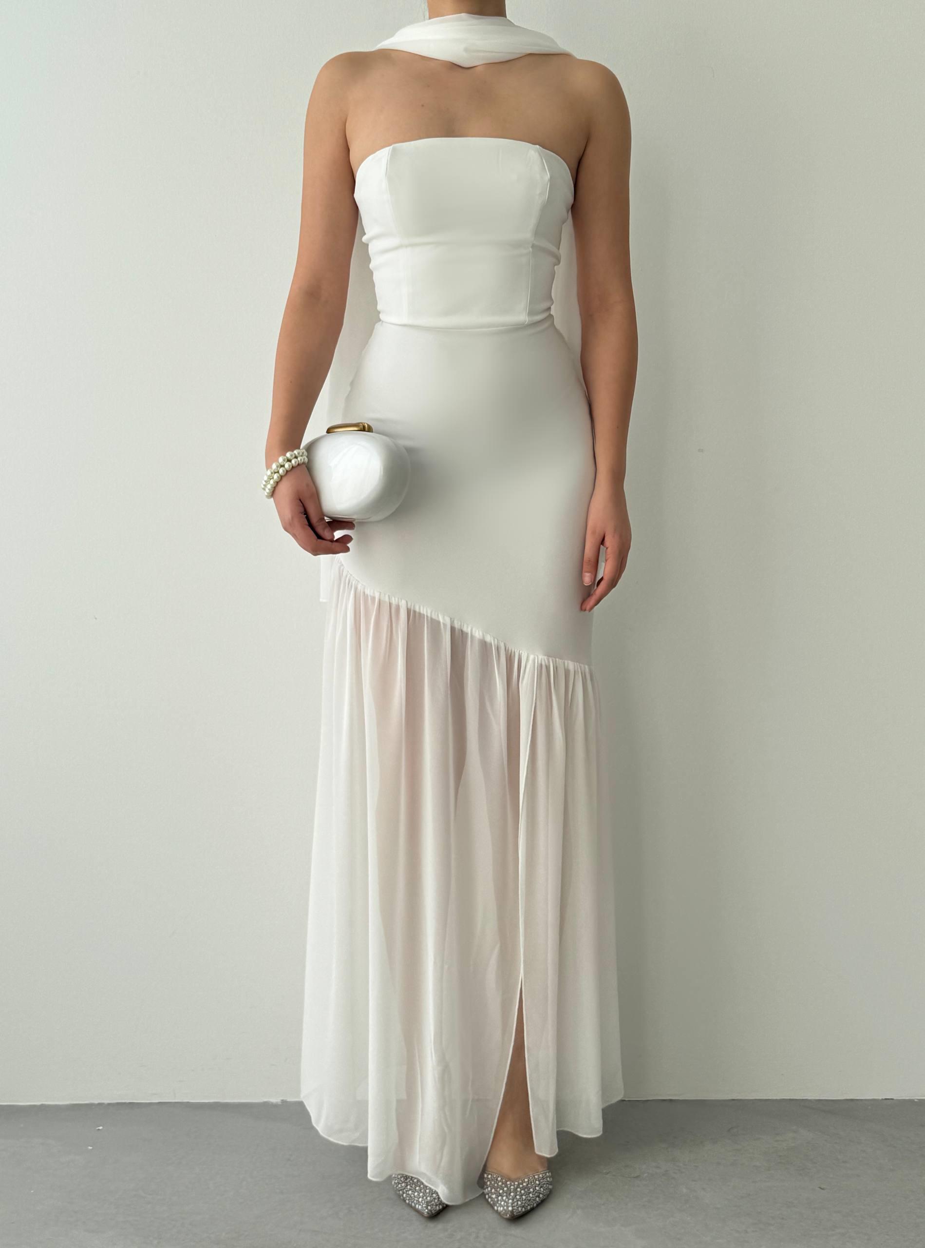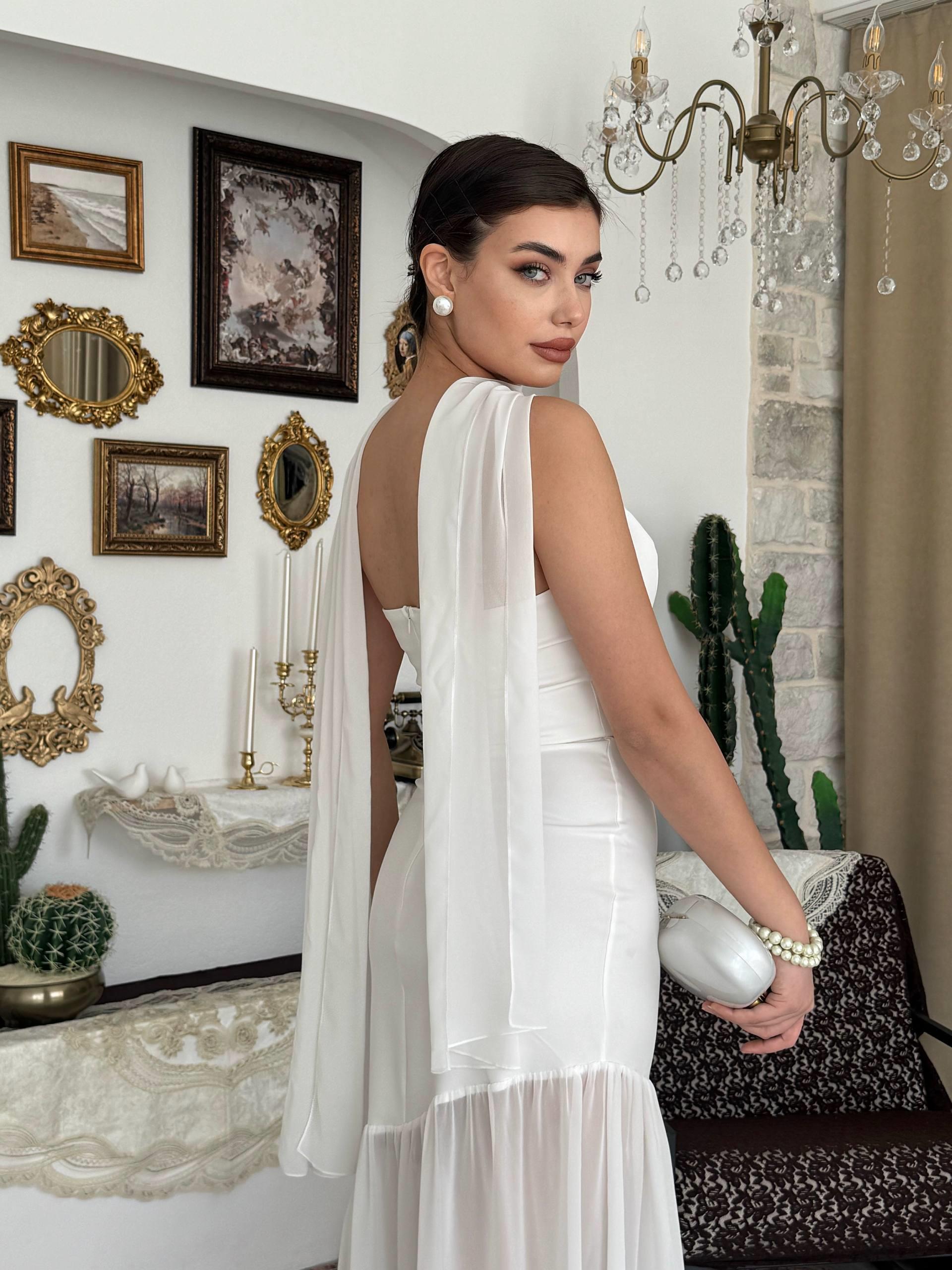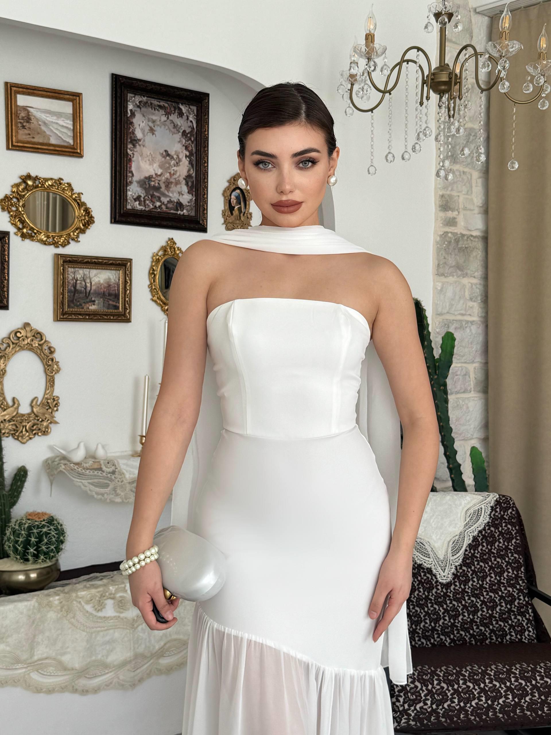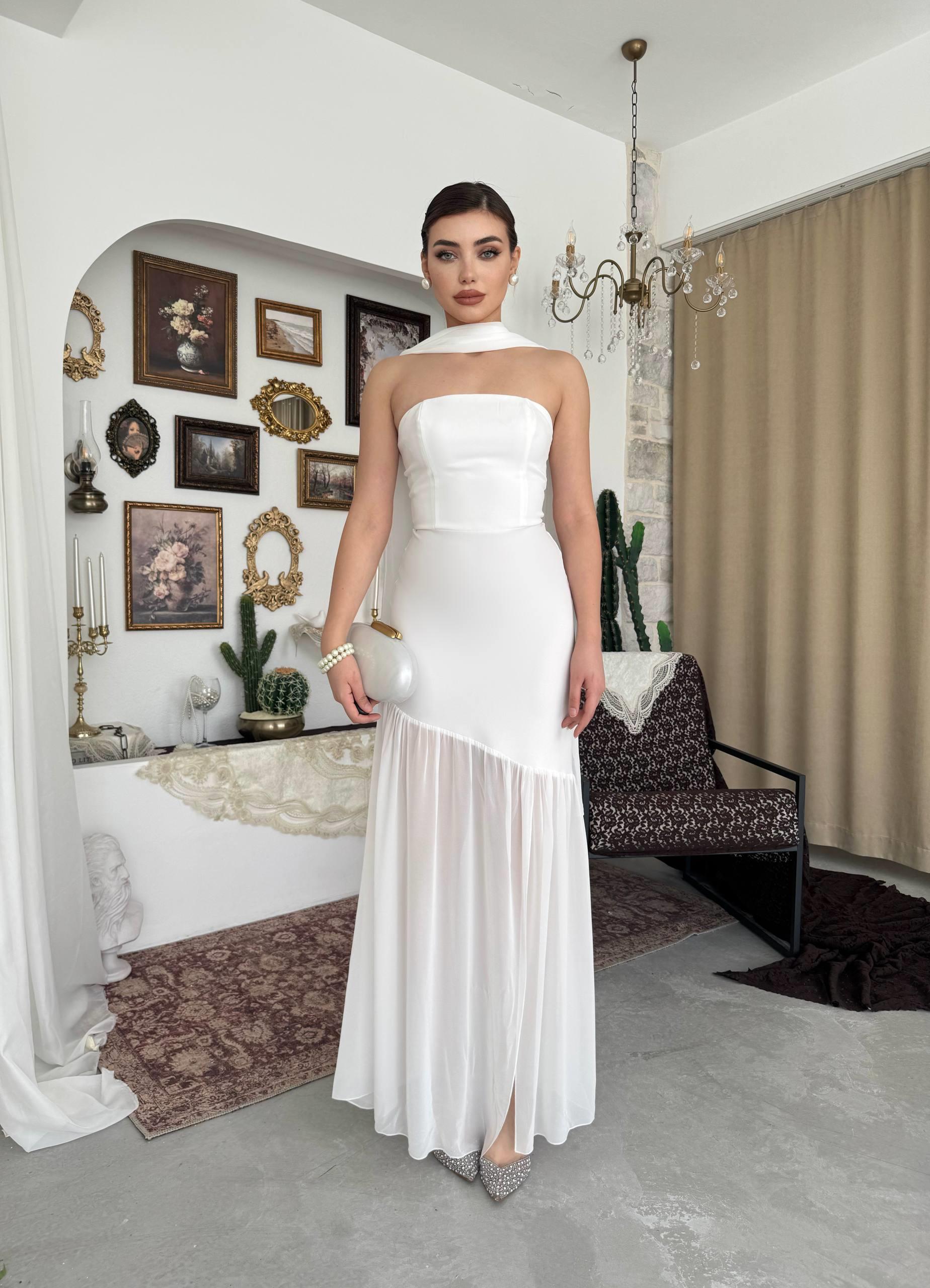 Manen Şal Detaylı Atlas Elbise (CON6496)
