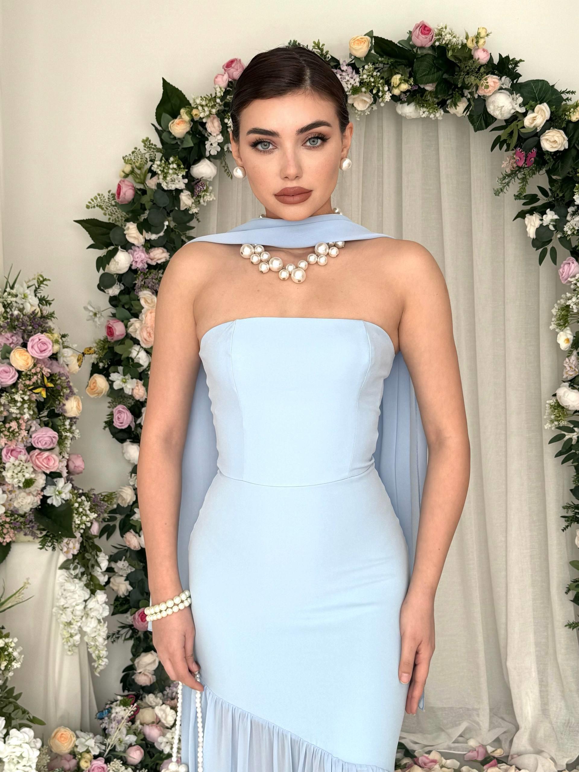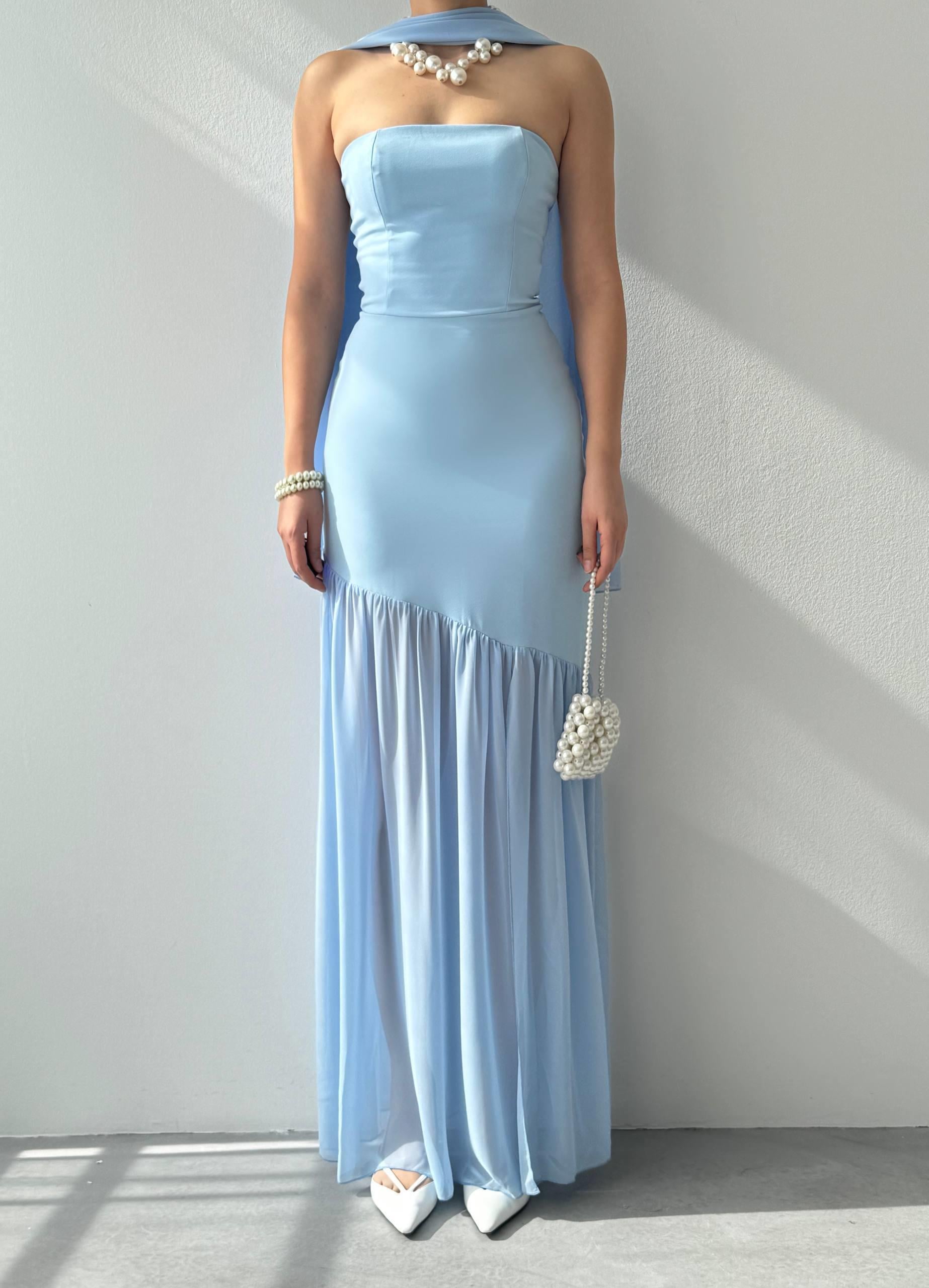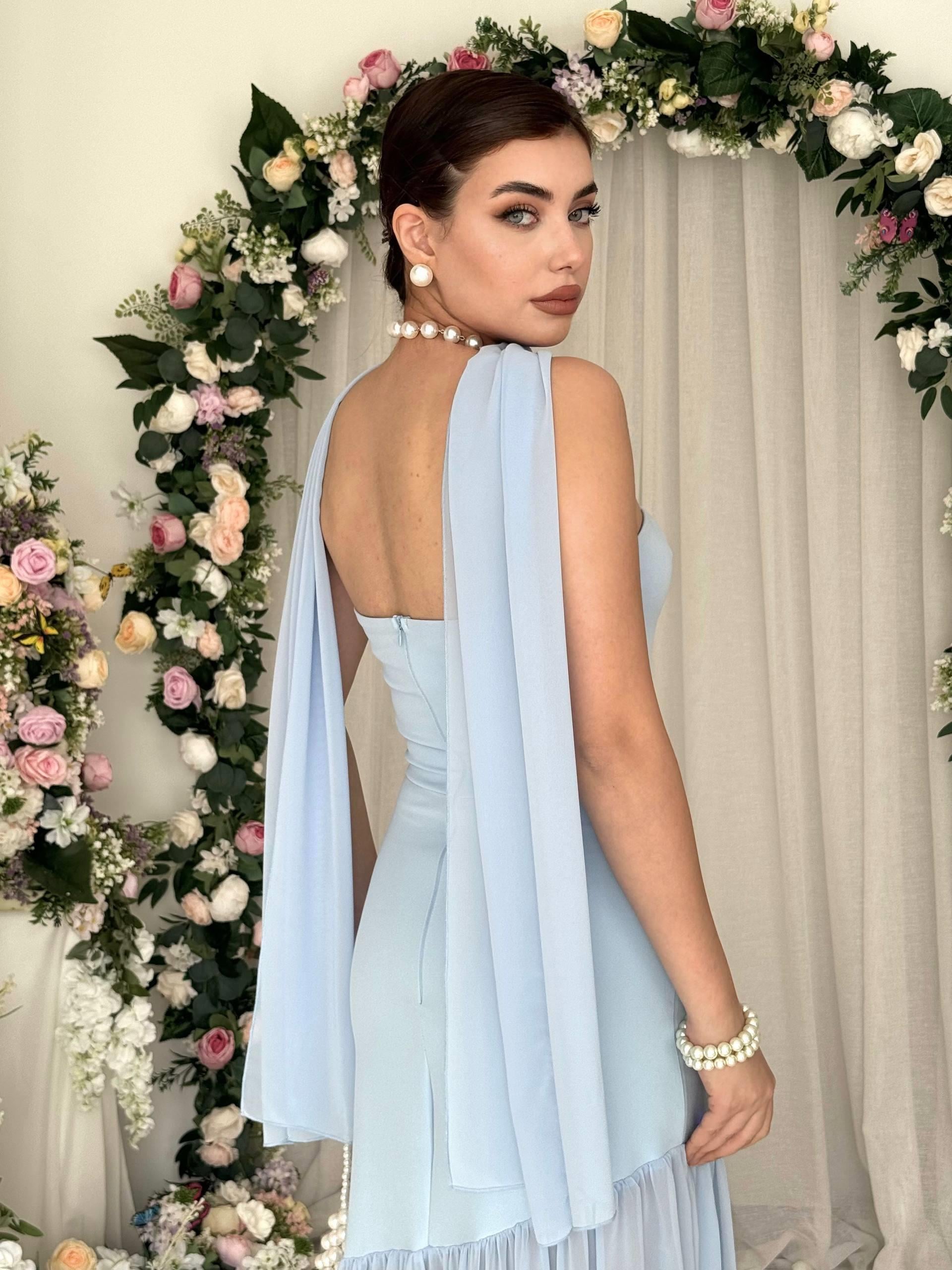 Manen Şal Detaylı Atlas Elbise (CON6496)