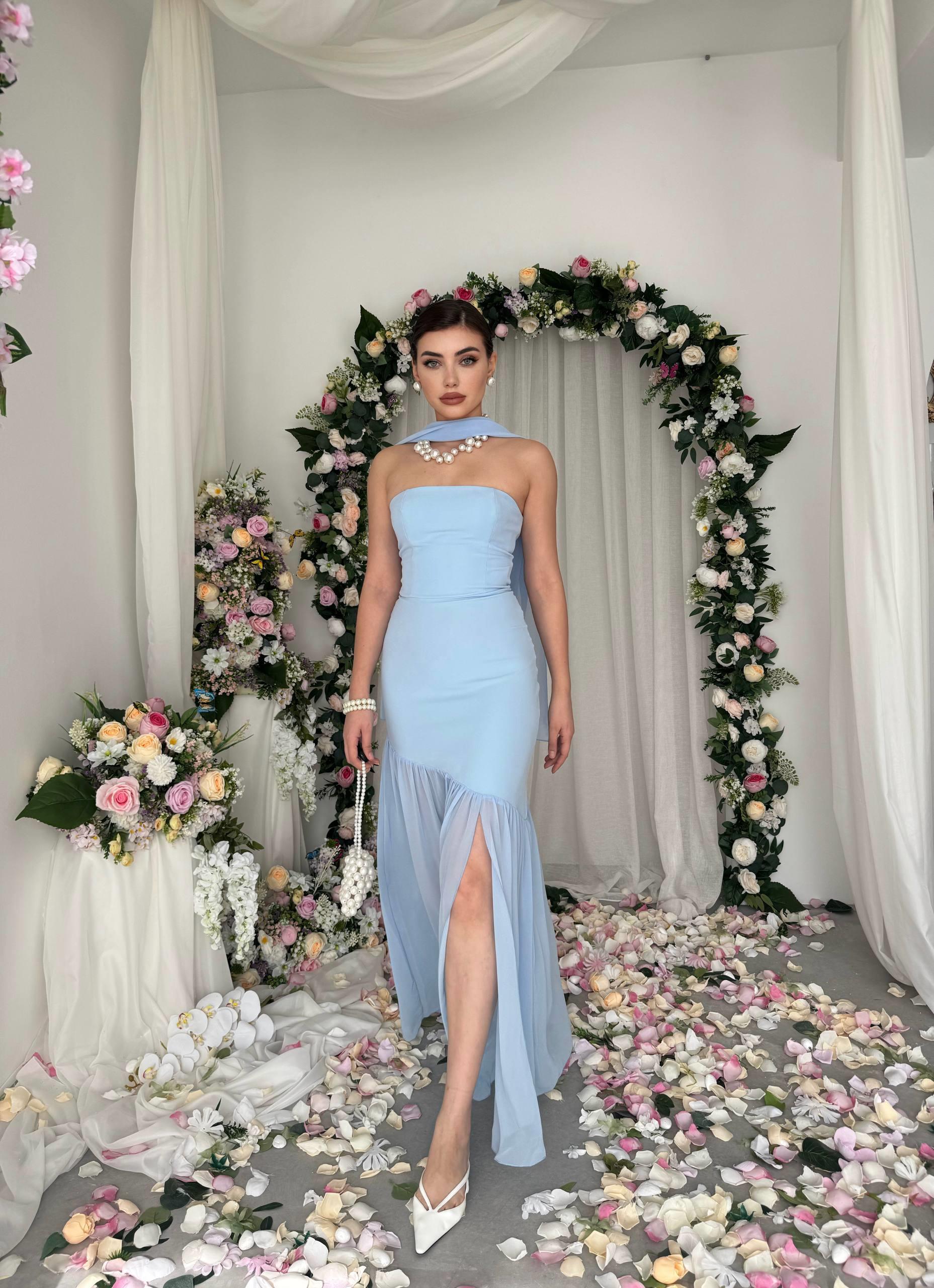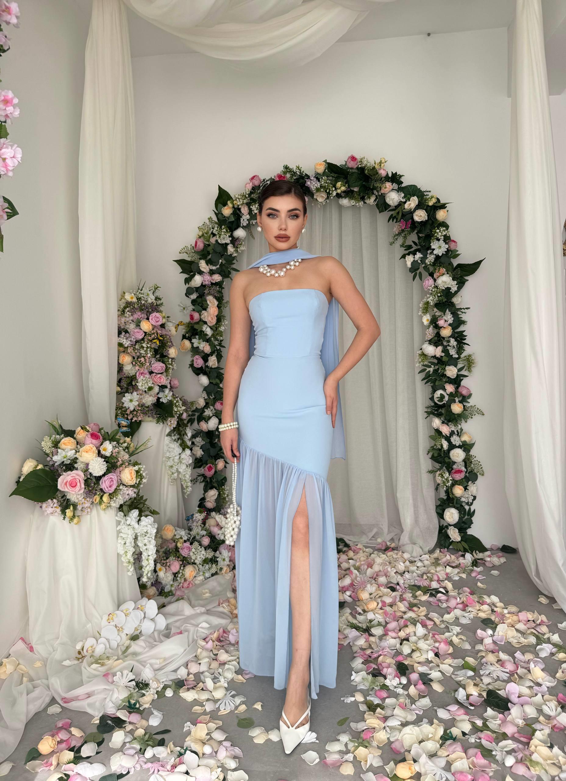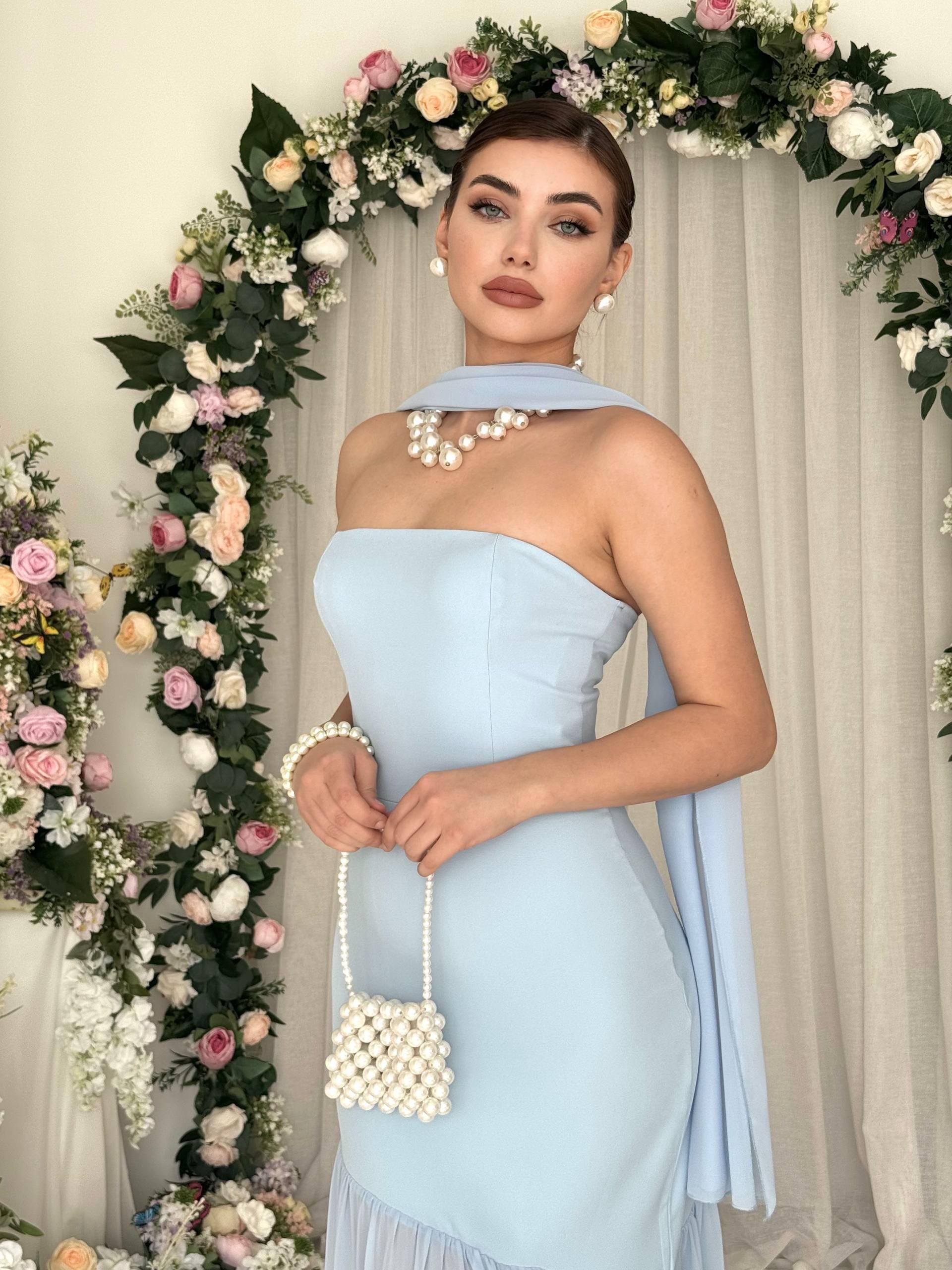 Manen Şal Detaylı Atlas Elbise (CON6496)