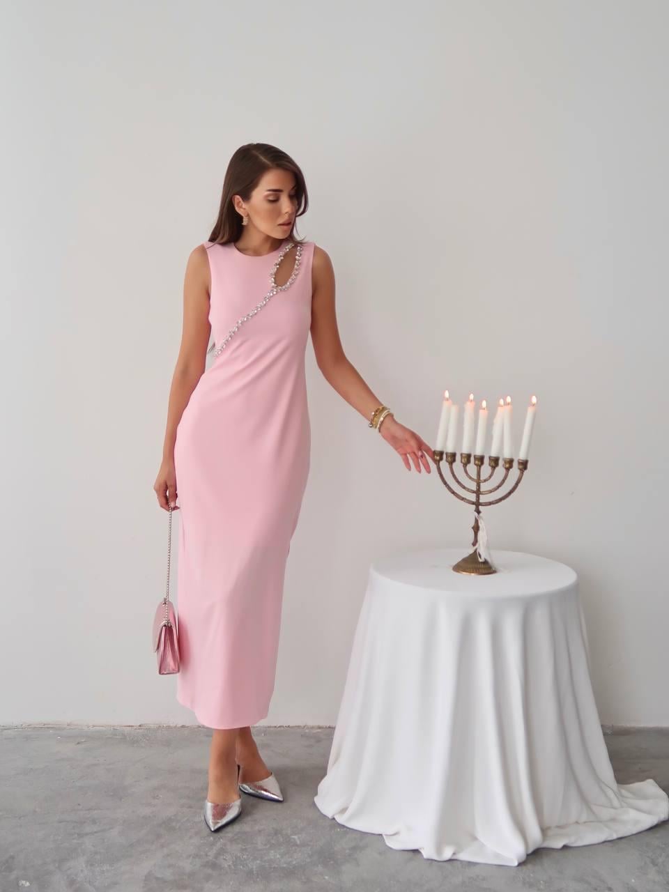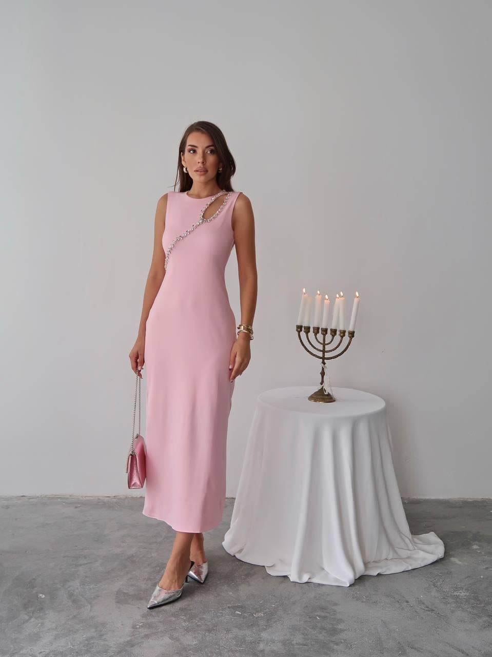 Mona Taş Detay Atlas Kumaş Uzun Elbise (CON6337 )