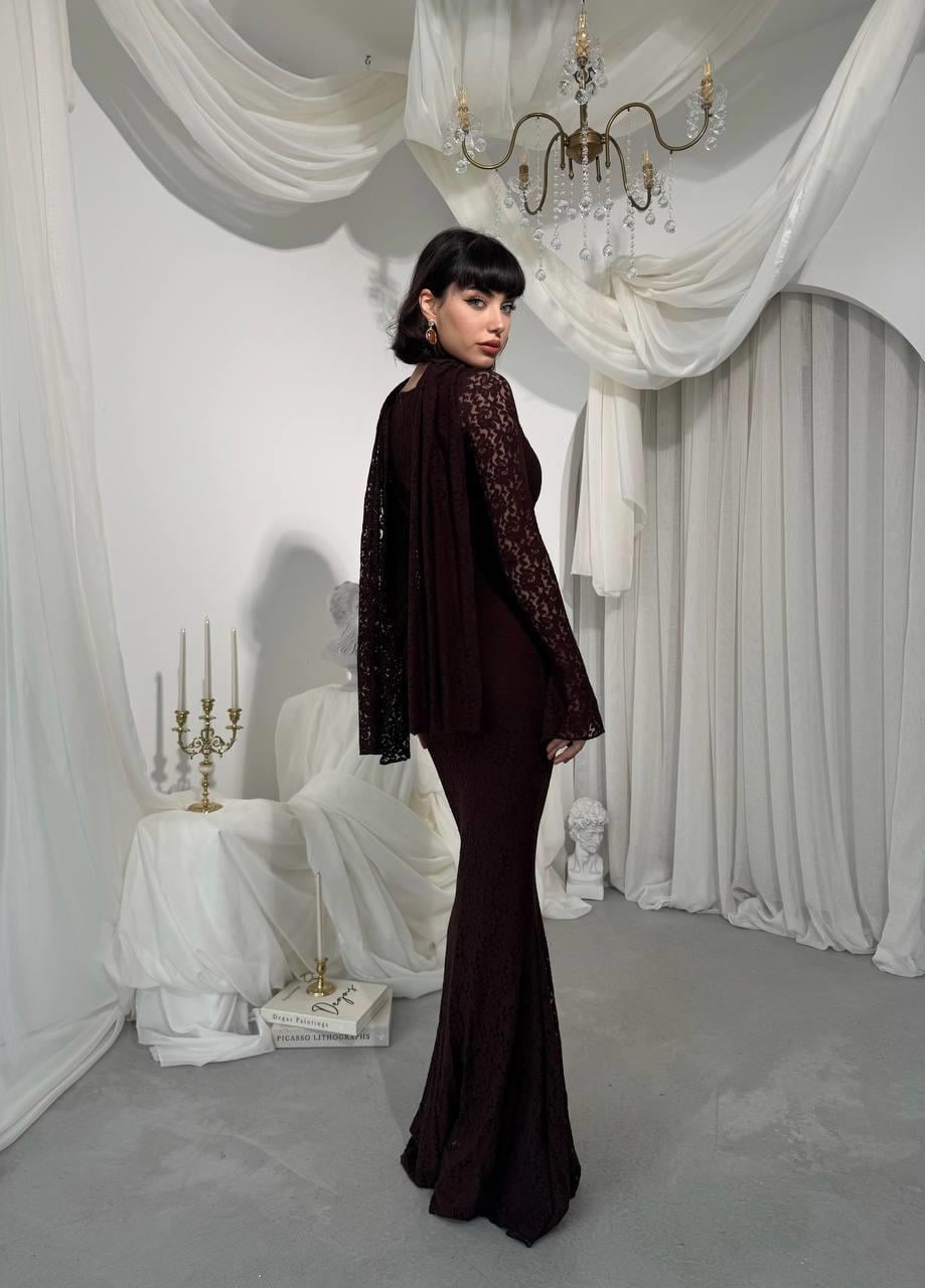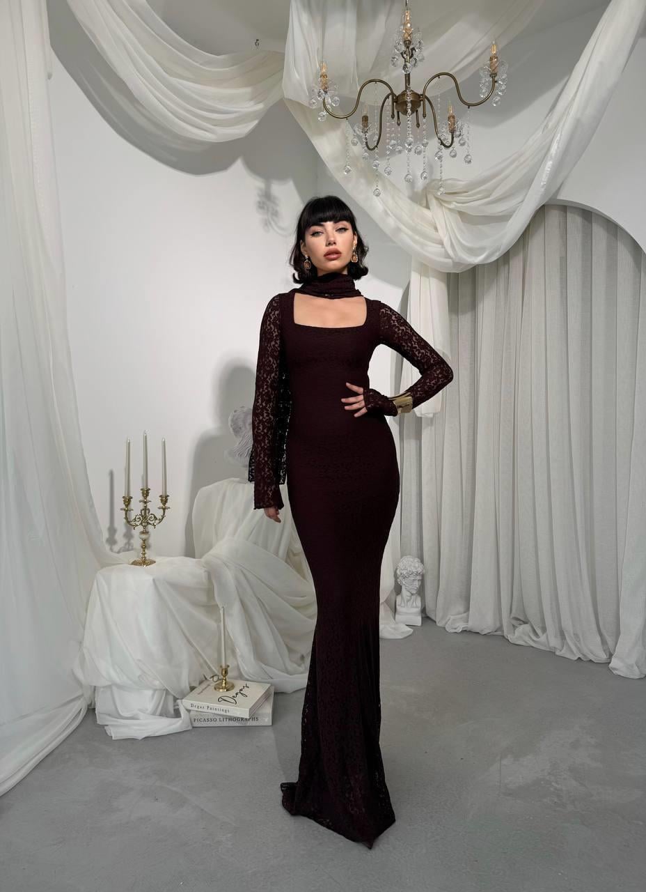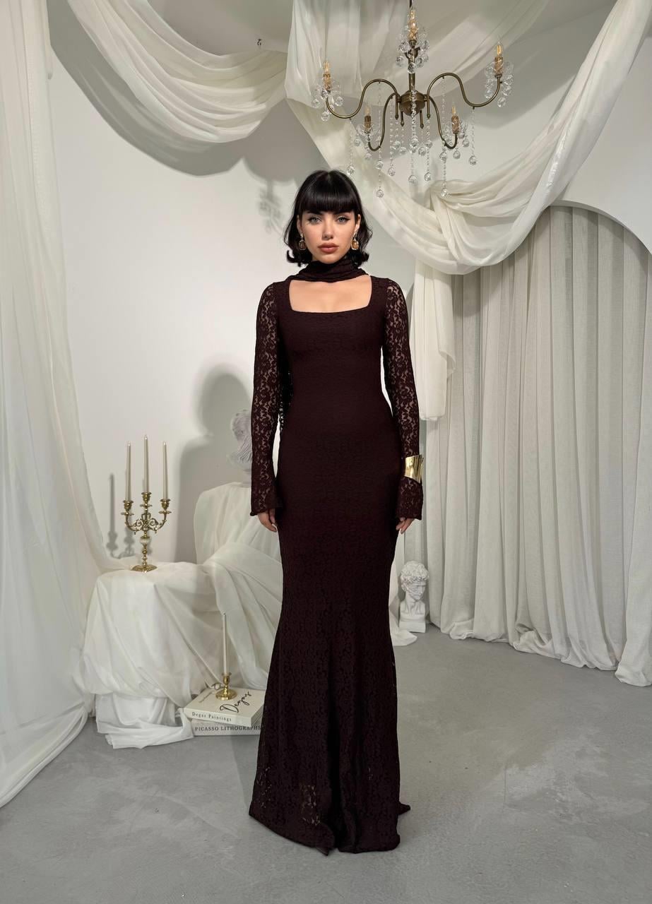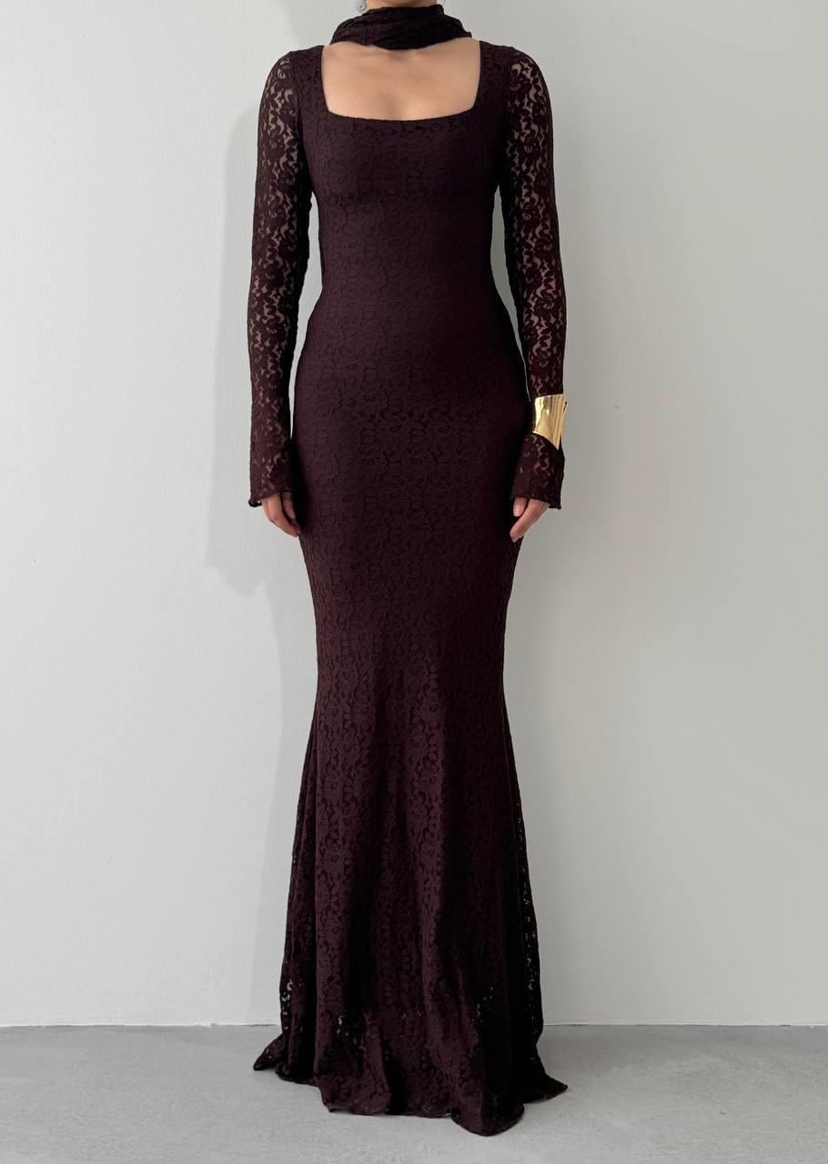 Olin Şallı Dantel Uzun Elbise (CON6441)