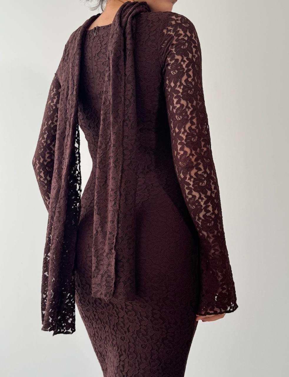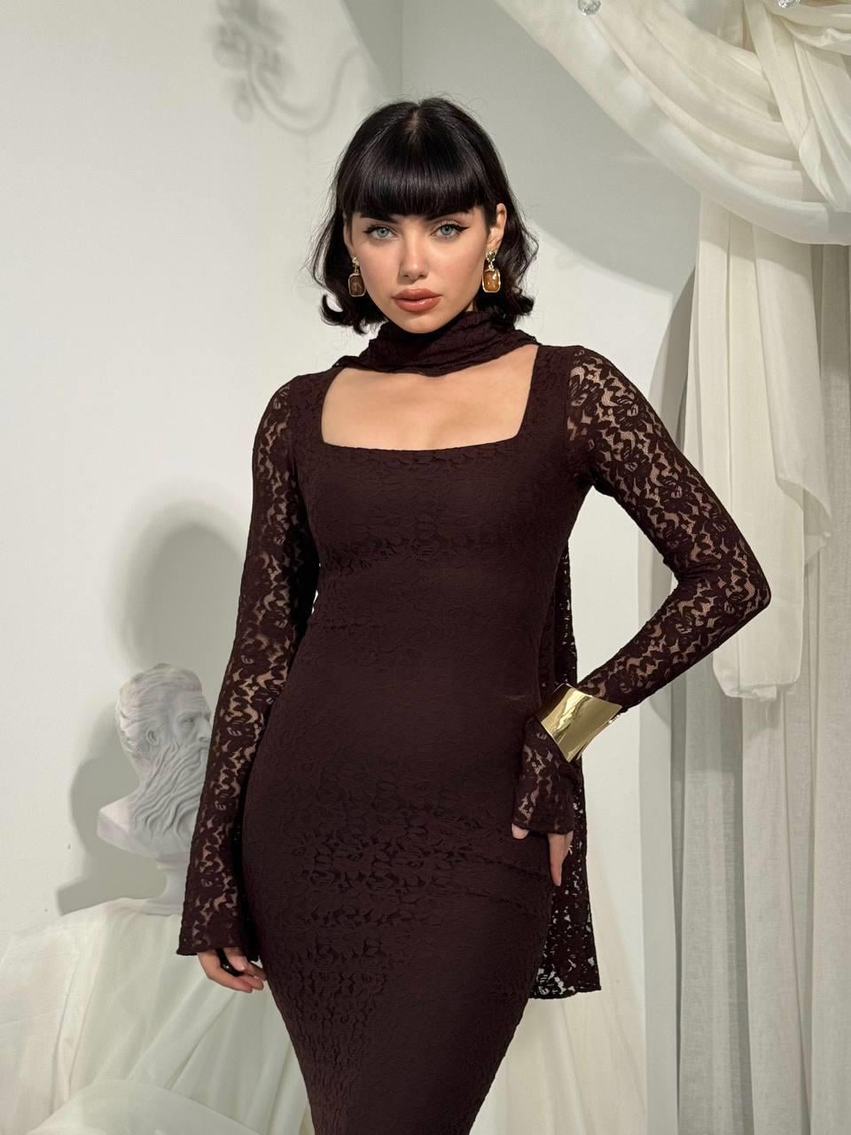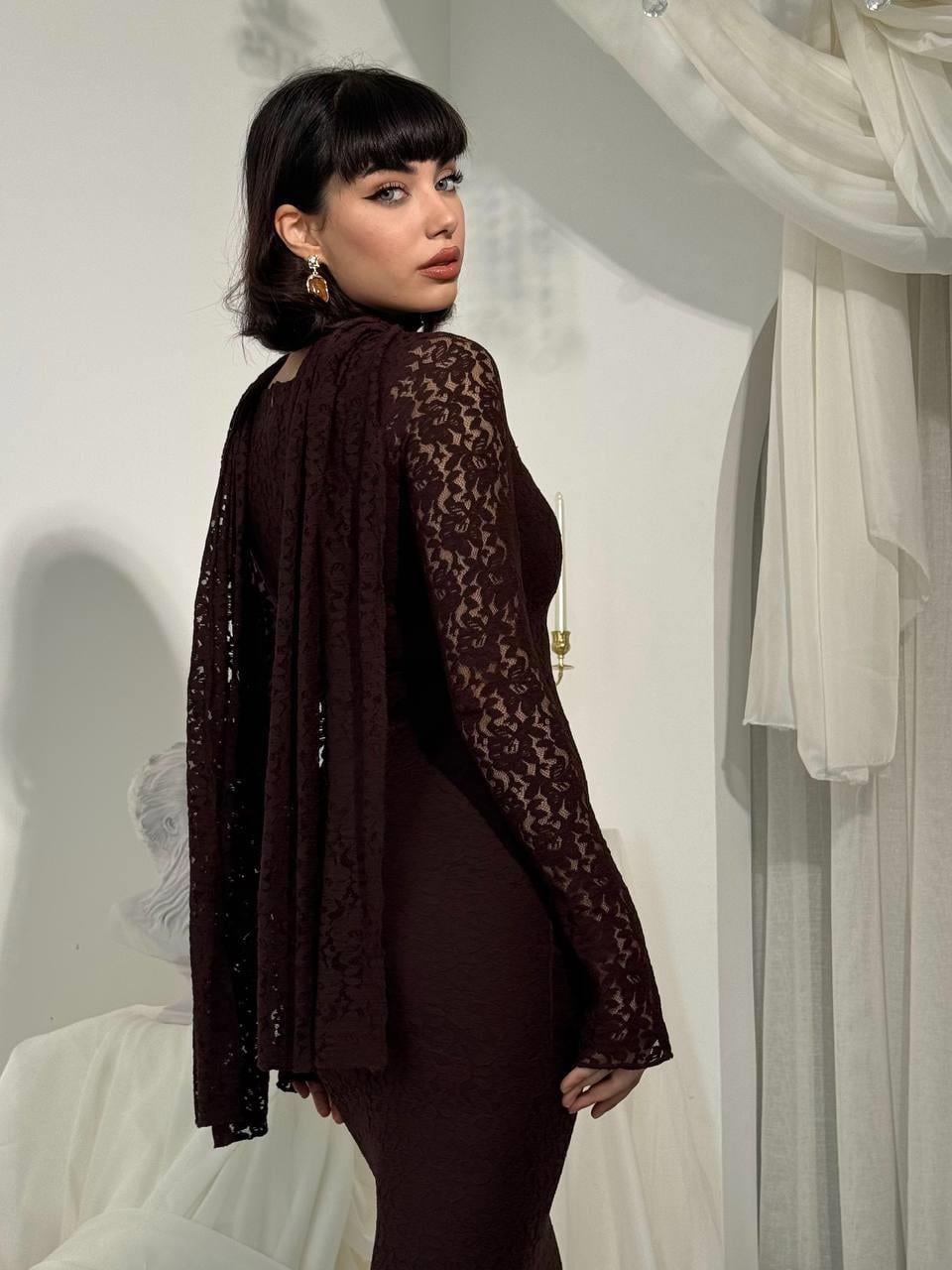 Olin Şallı Dantel Uzun Elbise (CON6441)