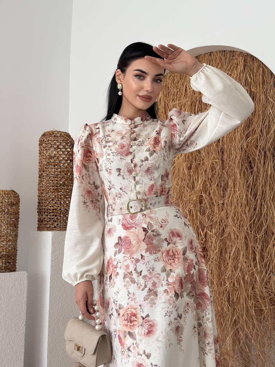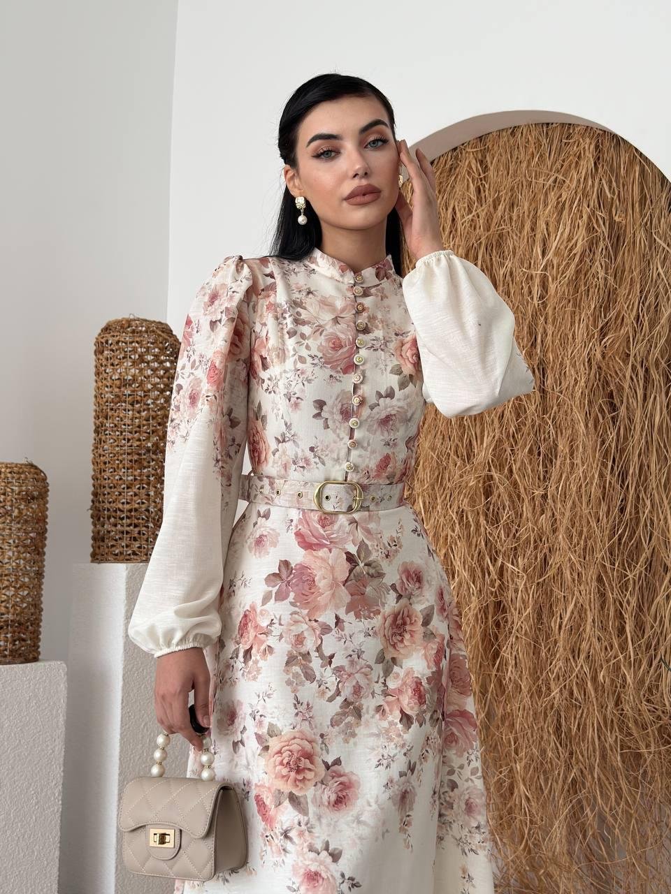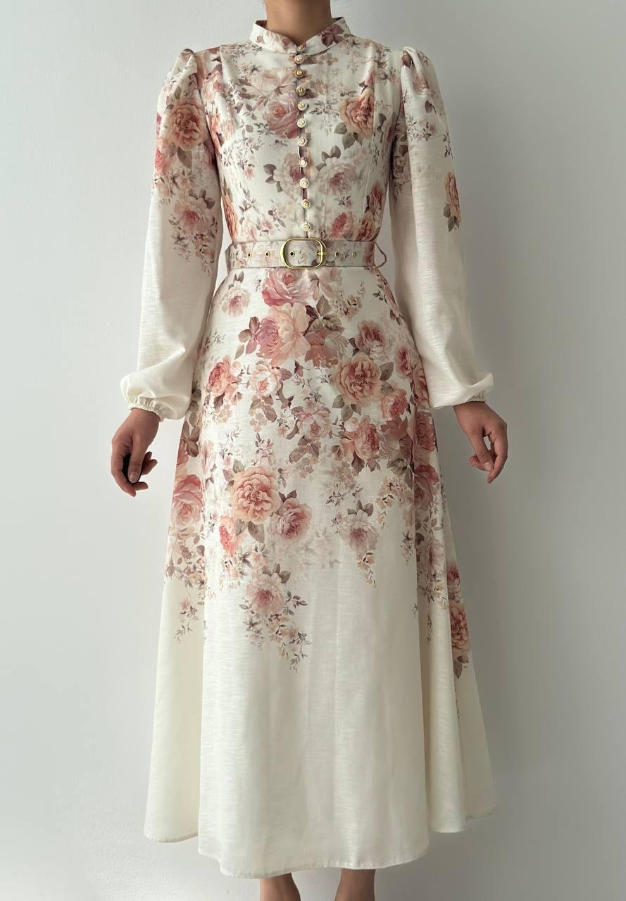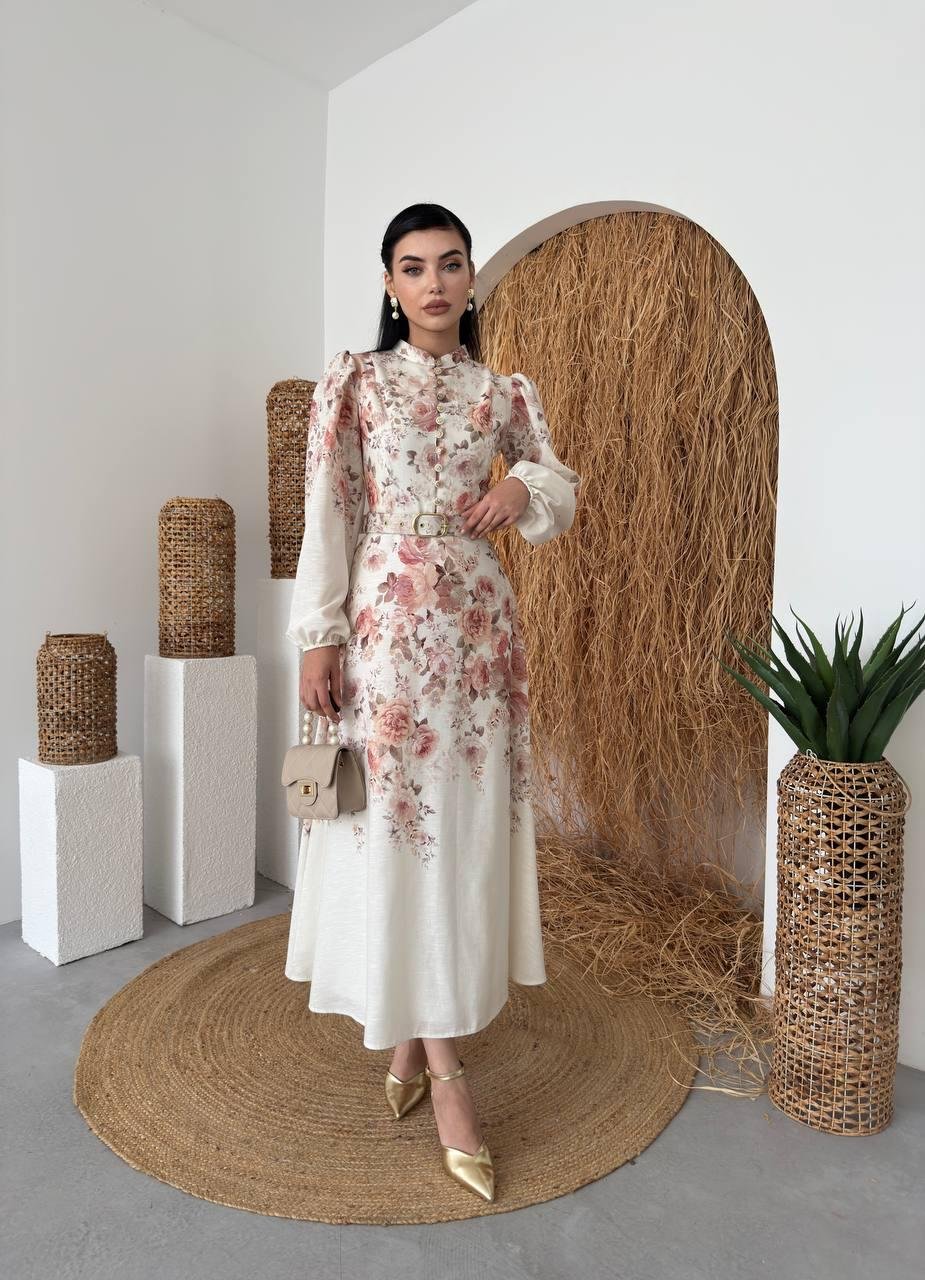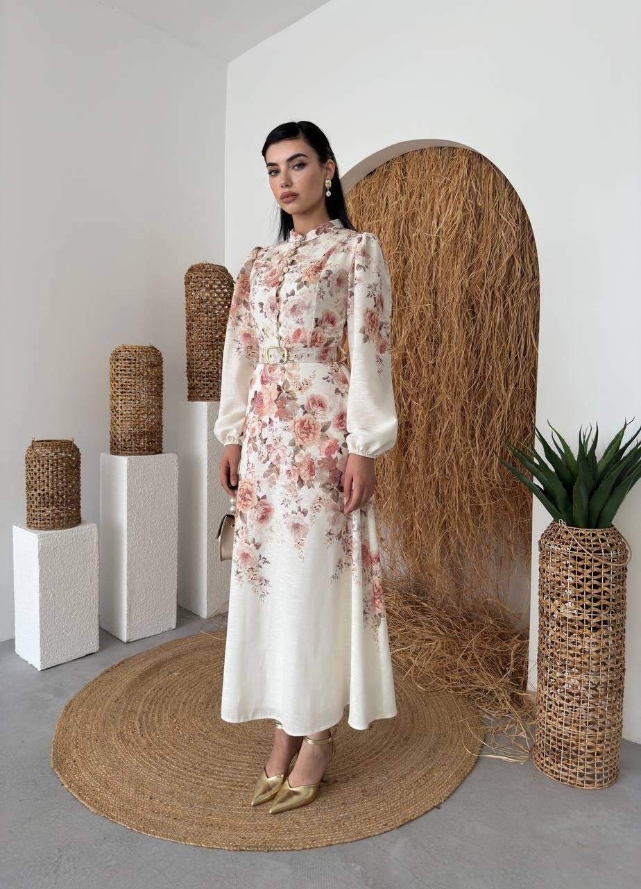 Orlena Düğme Detay Kemerli Uzun Elbise (CON6356)