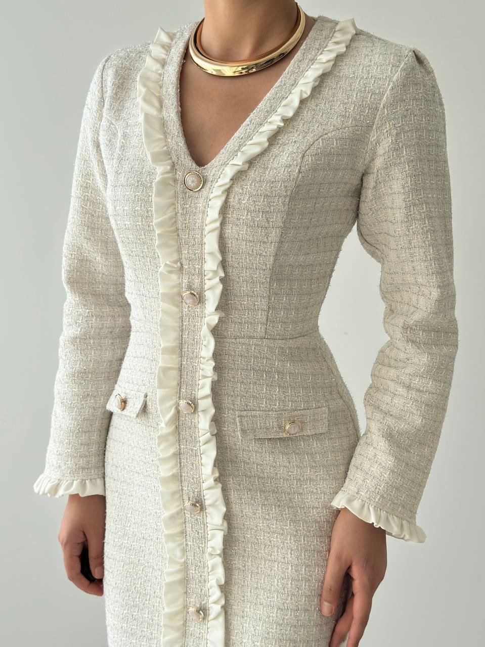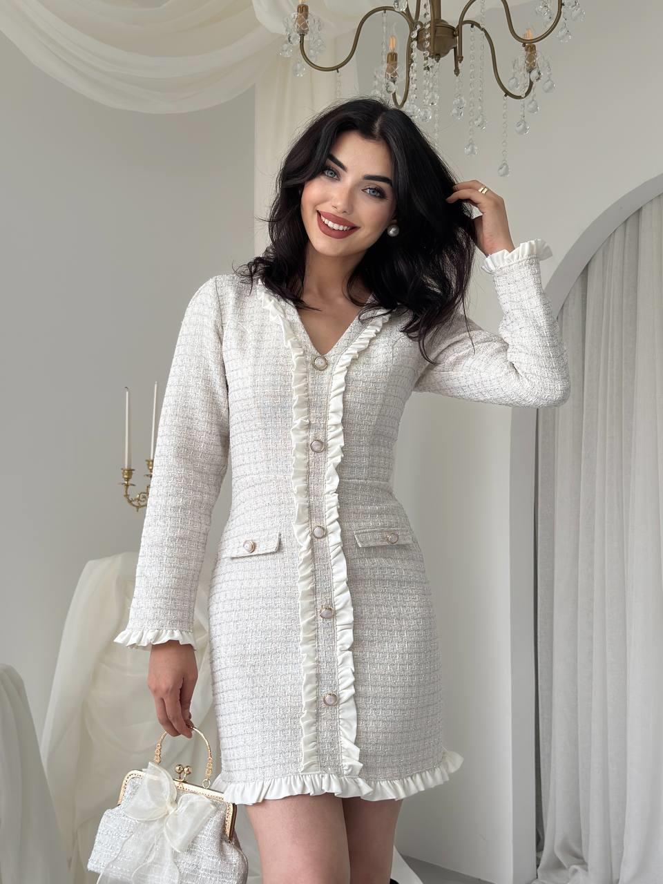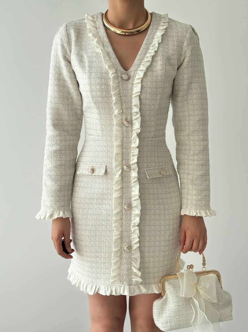 Orse Düğmeli Cepli Mini Elbise (CON6386)