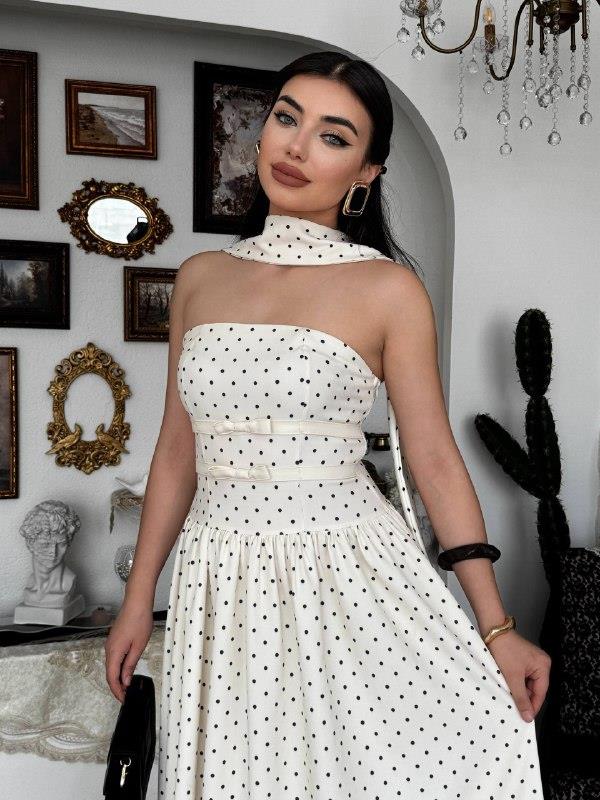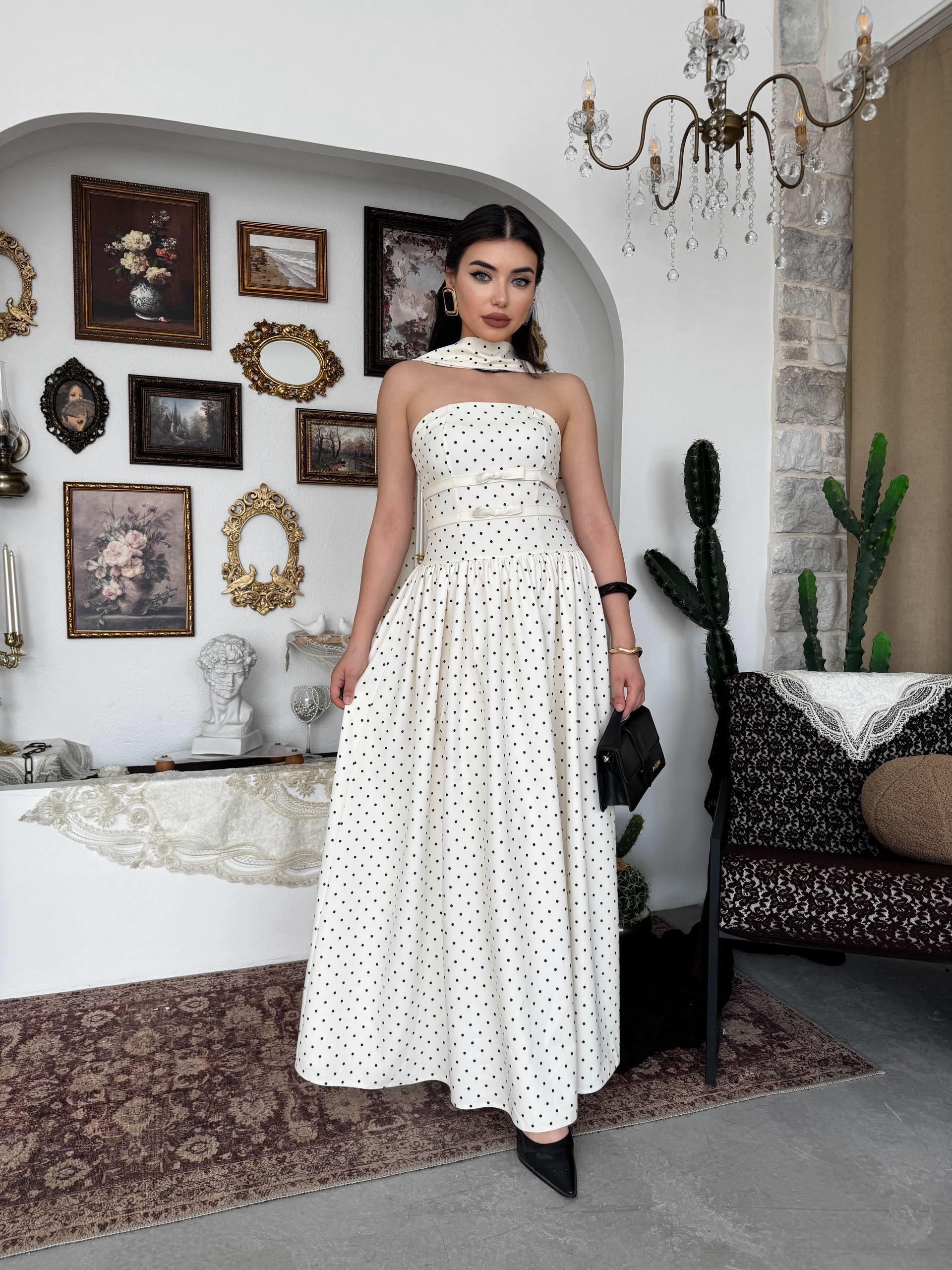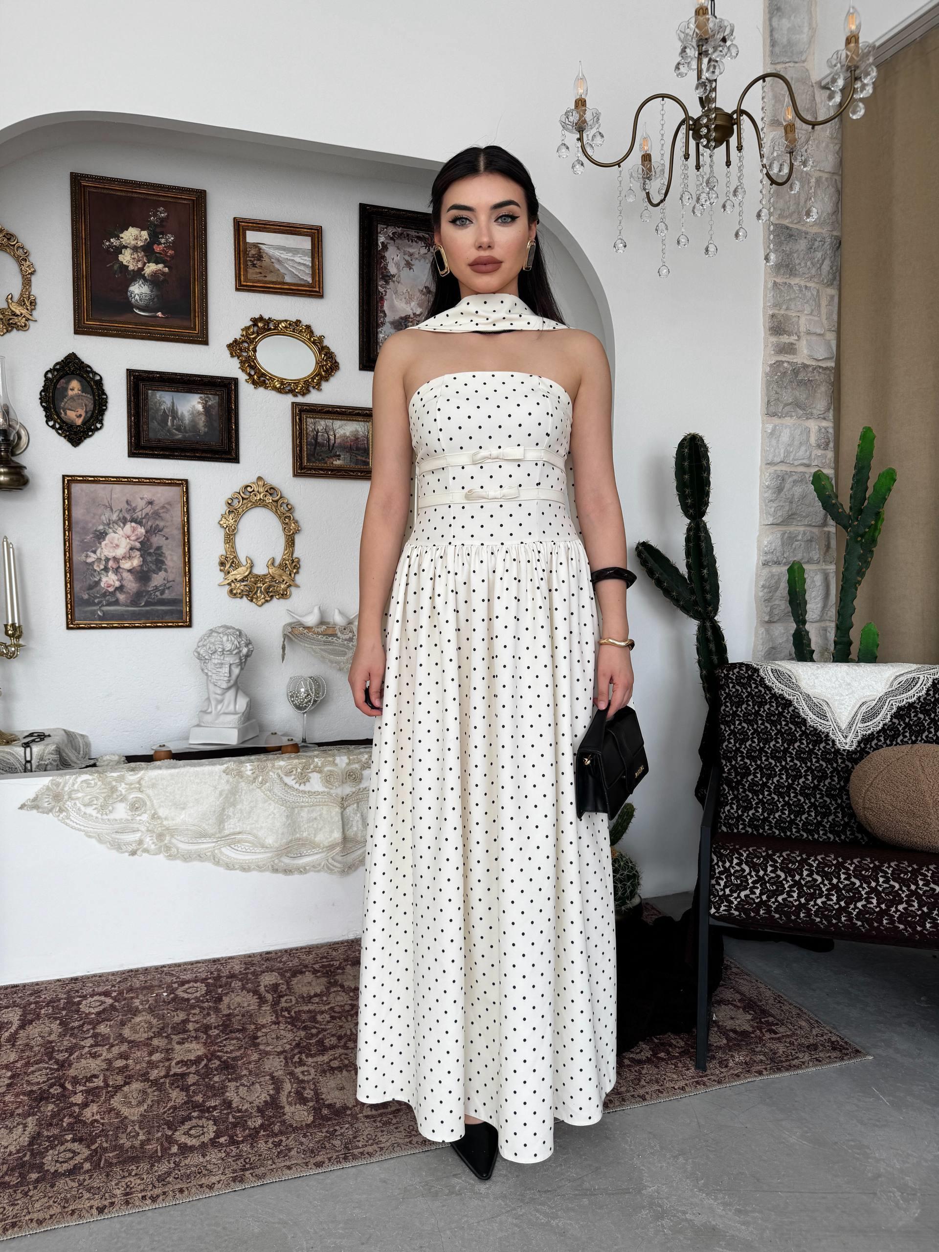 Penas Straplez Puantiyeli Elbise (CON6544)