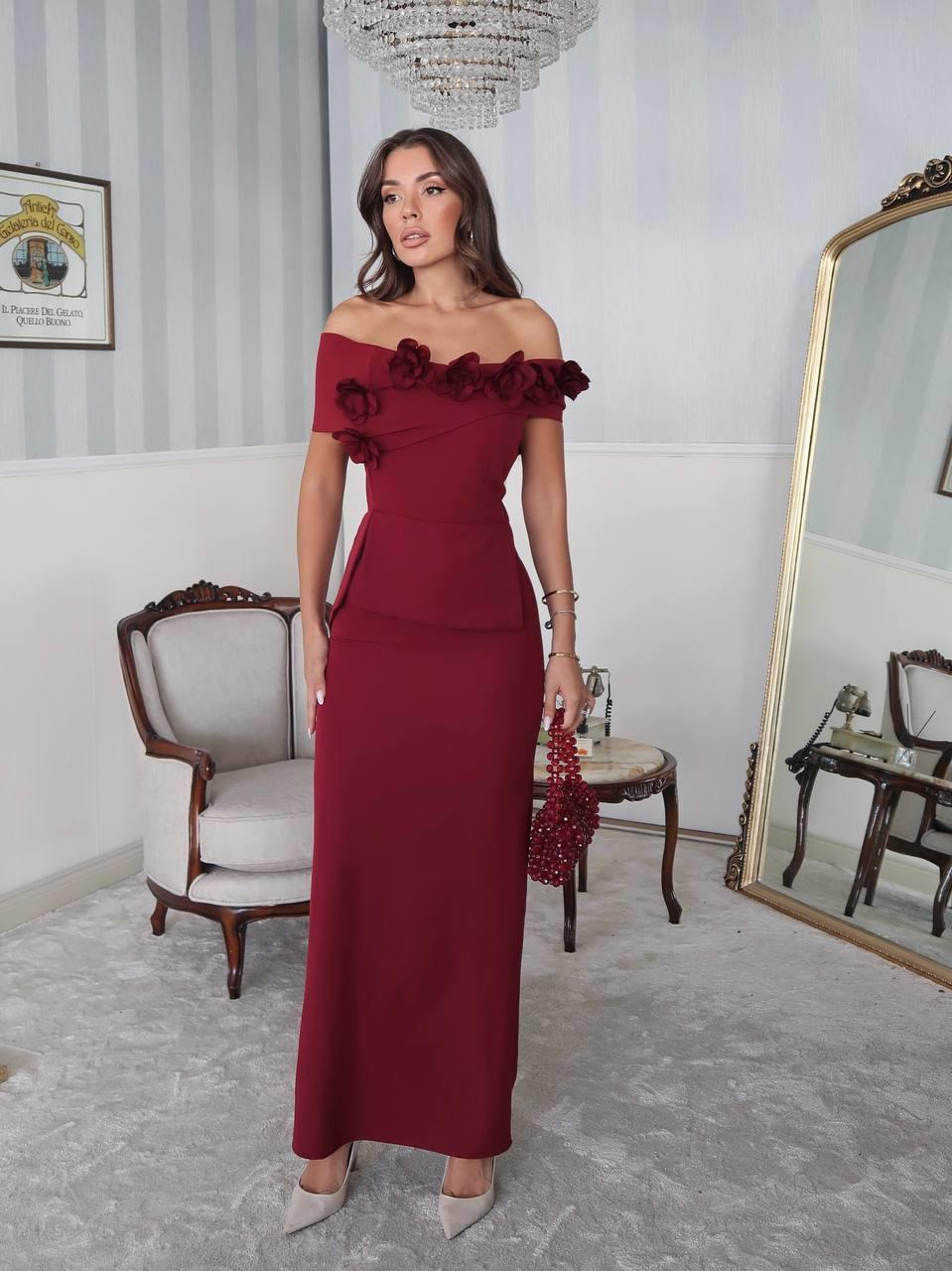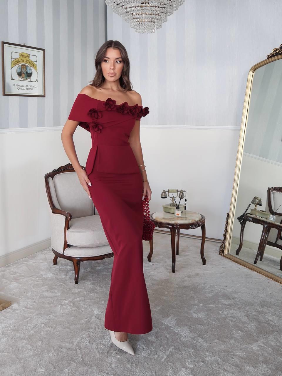 Rina Tasarım Çiçek Detay Uzun Elbise (CON6328)