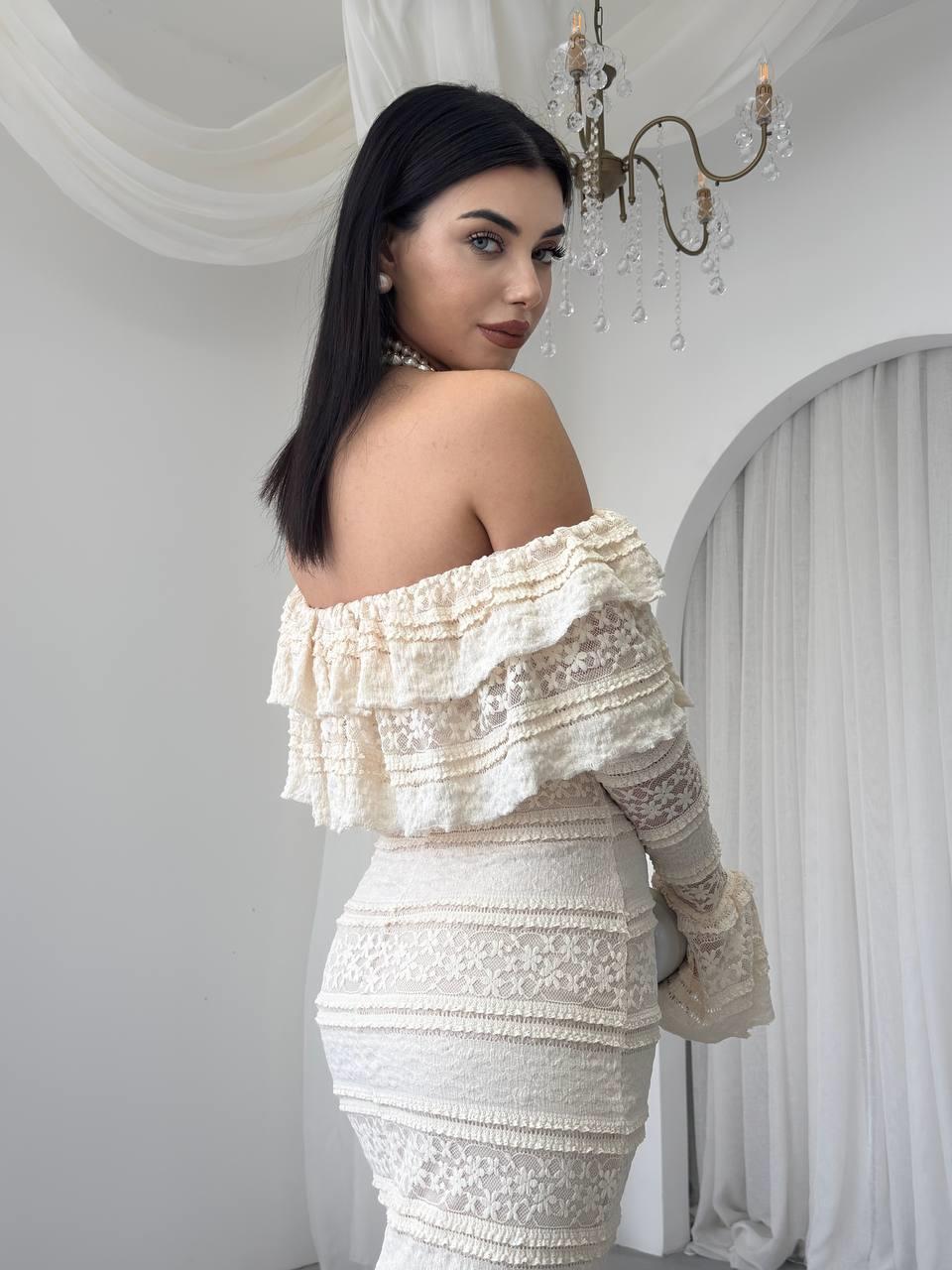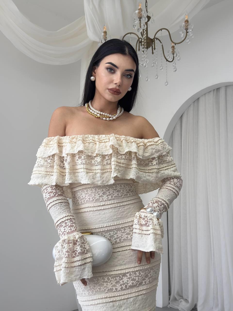 Straplez Madonna Yaka Tasarım Elbise (CON6417)