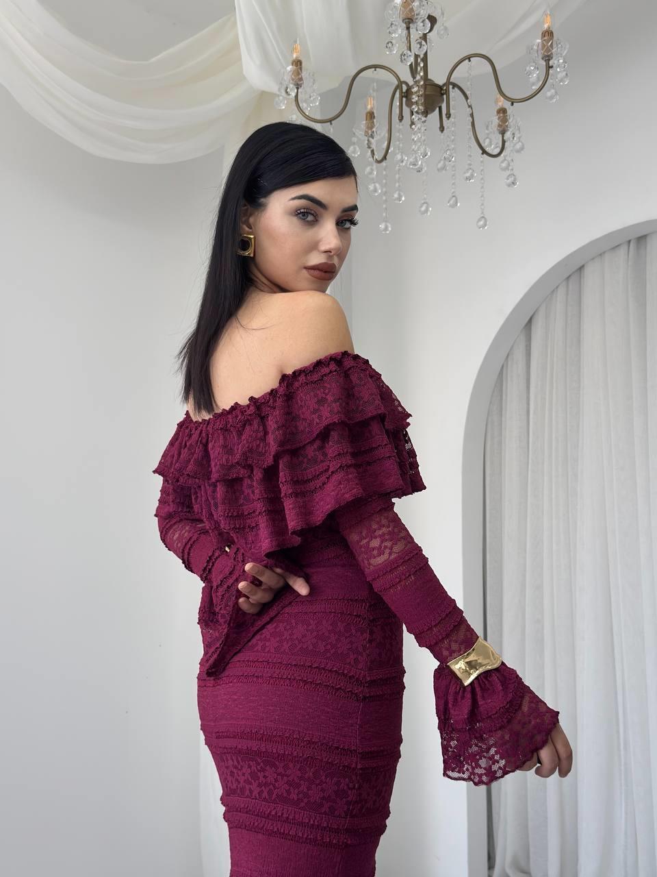 Straplez Madonna Yaka Tasarım Elbise (CON6417 )