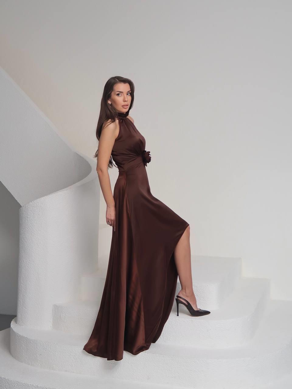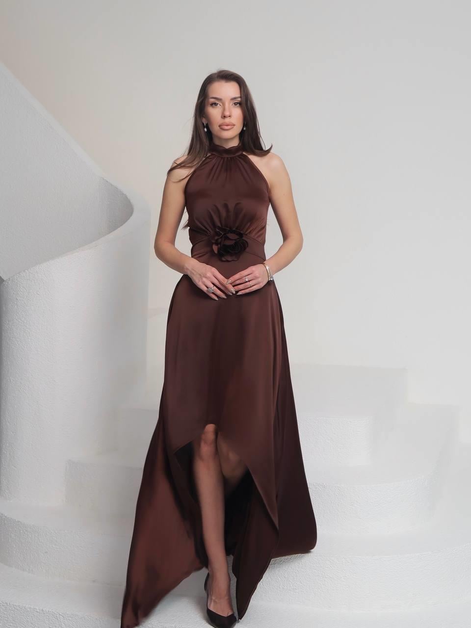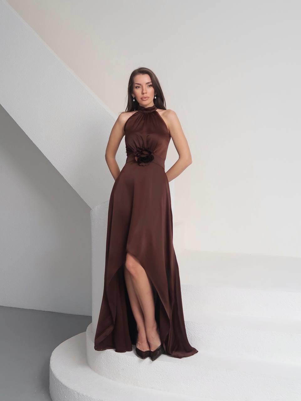Tasarım Çiçekli Saten Elbise Lara (CON6464)