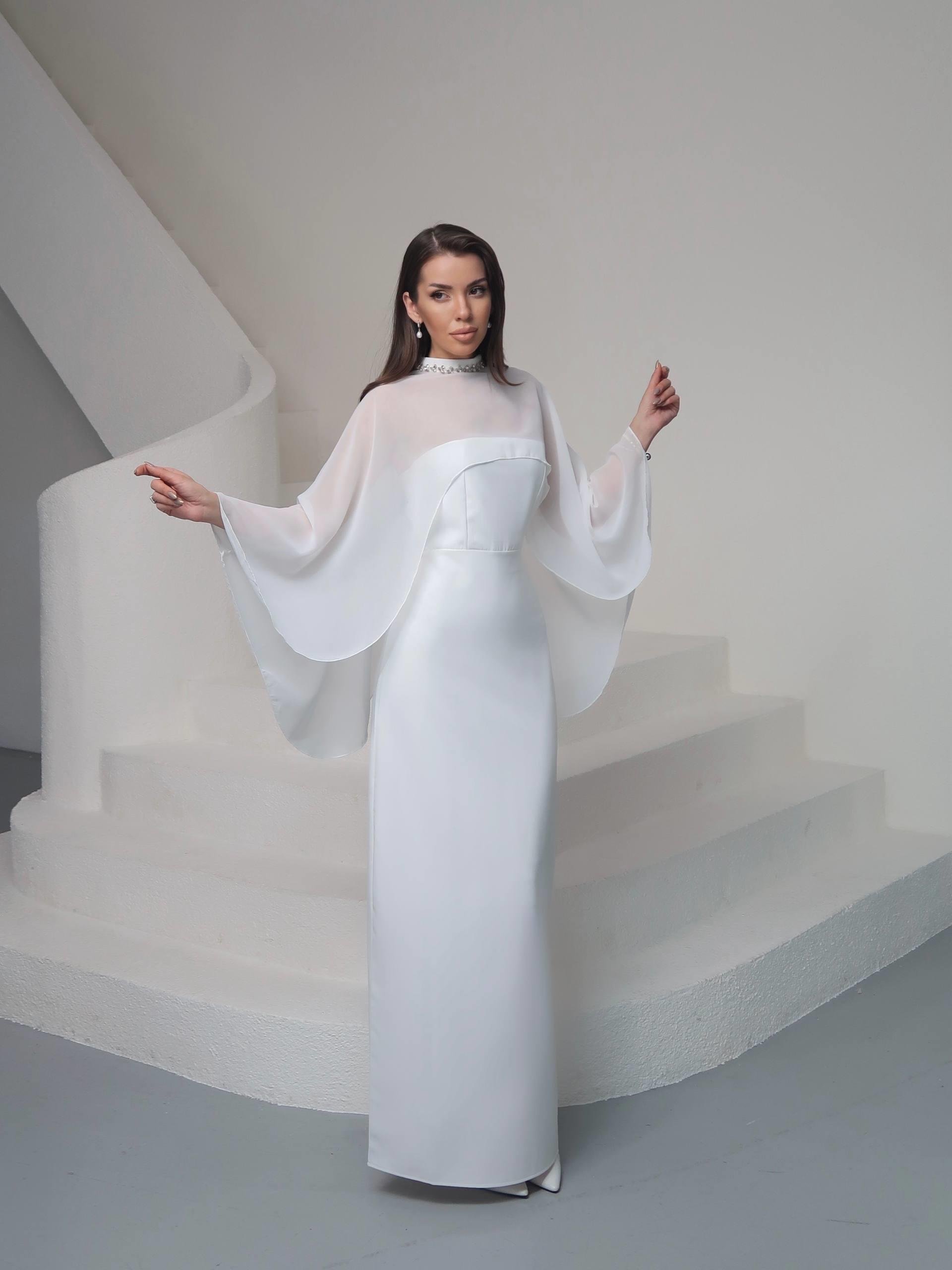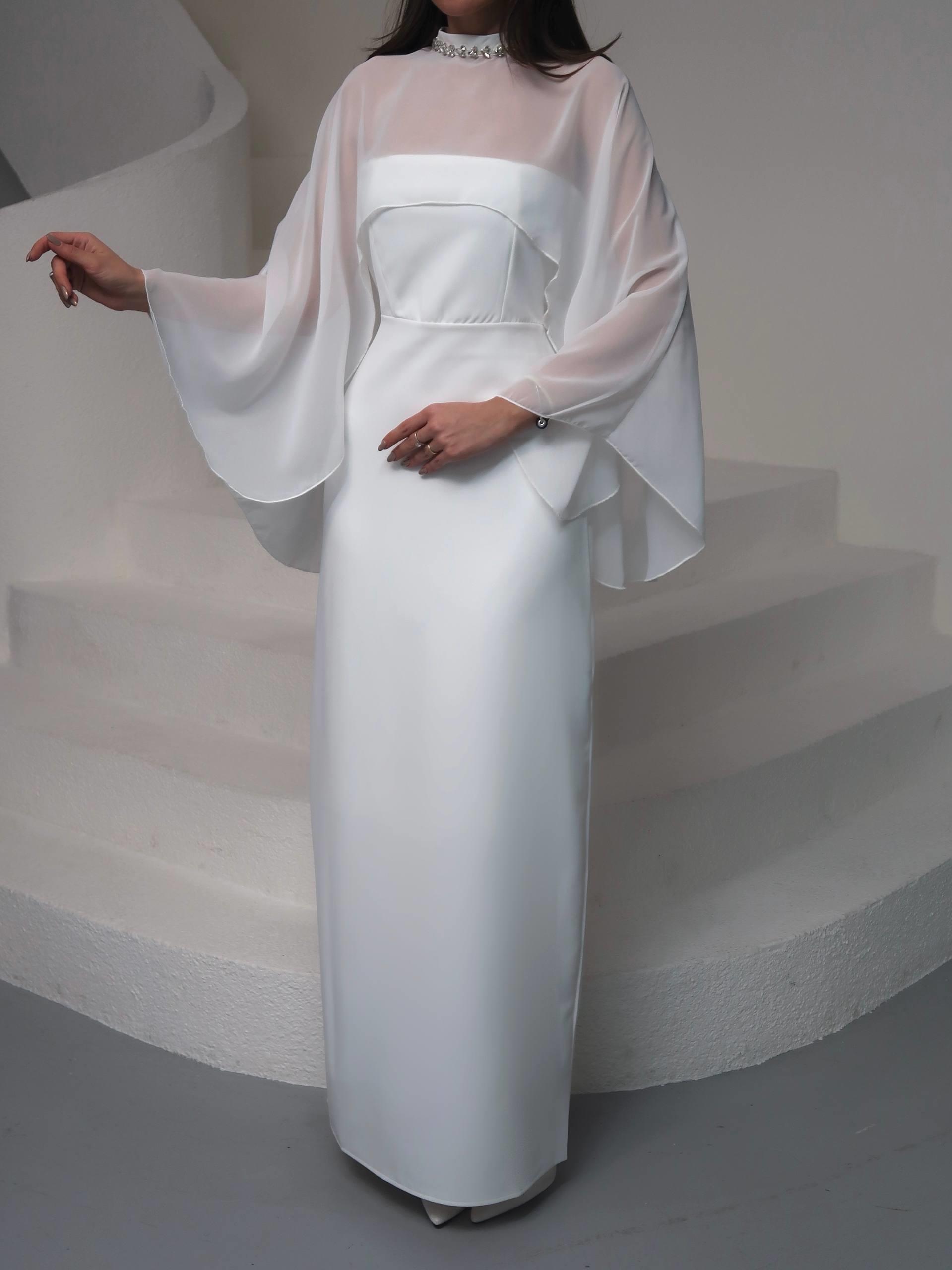 Tasarım Tül Detaylı Lilyum Uzun Elbise (CON6472)