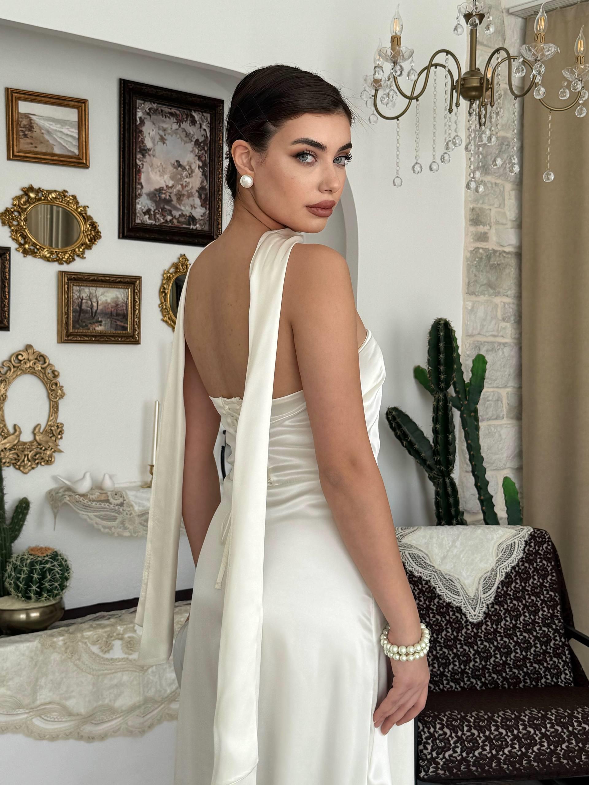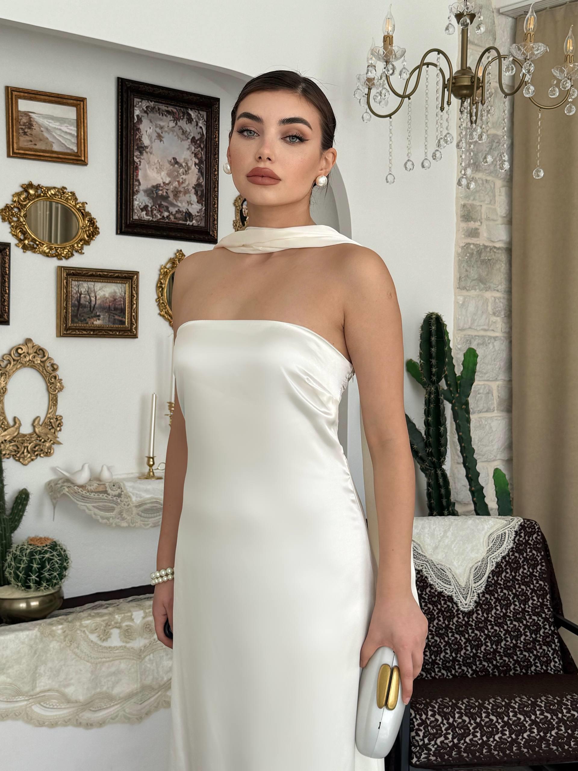 Ulsez Straplez Şal Detaylı Elbise (CON6493)