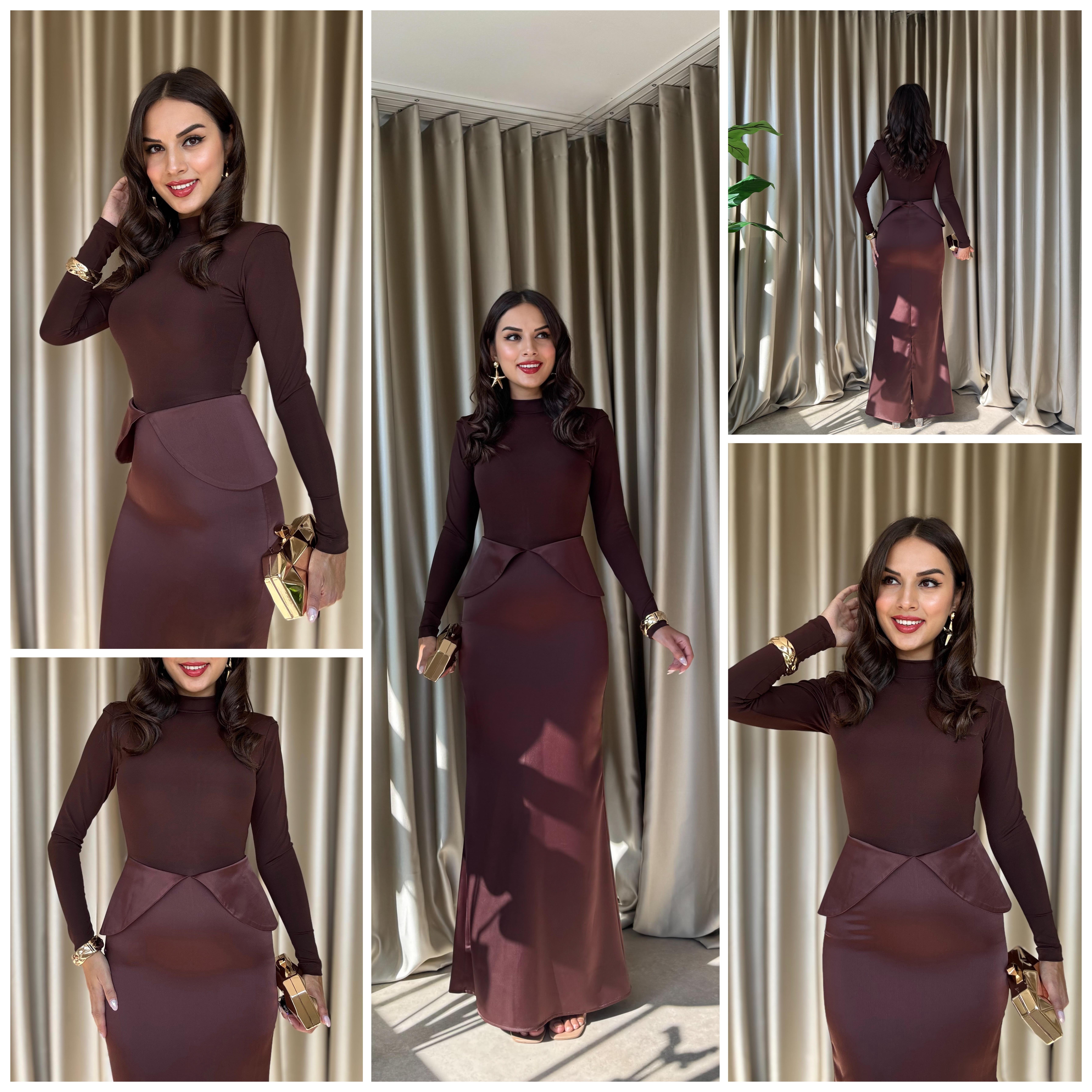 Uzun Kollu Balıkçı Yaka Saten Detay Şık Elbise (CON6393 )
