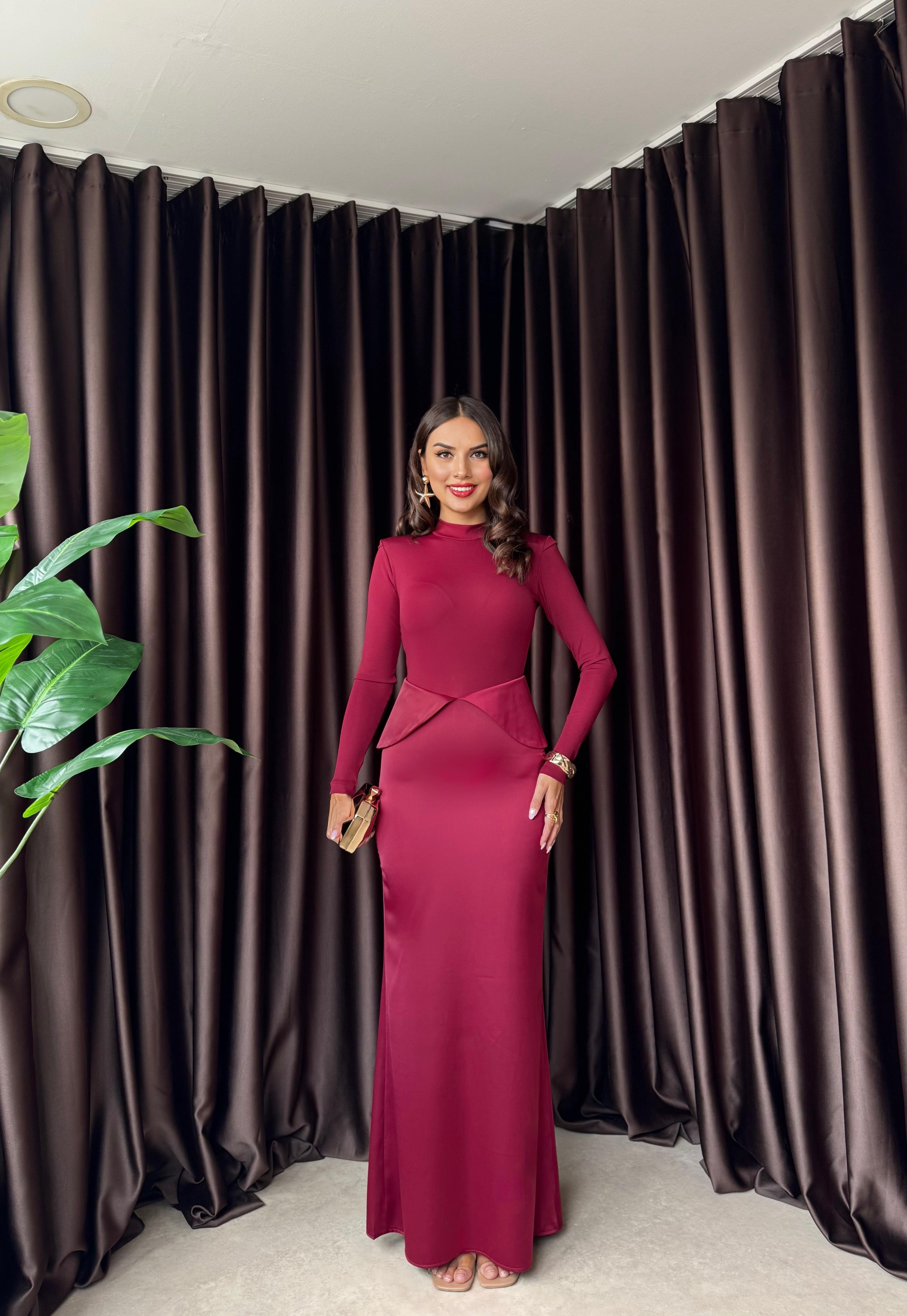 Uzun Kollu Balıkçı Yaka Saten Detay Şık Elbise (CON6393)